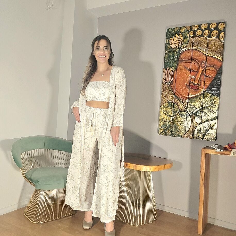 ithal iğne ile özel işlenmiş koton kumaş 3'lü takım 36-44 beden aralığına uyumludur
