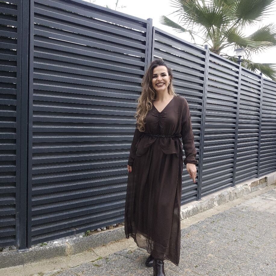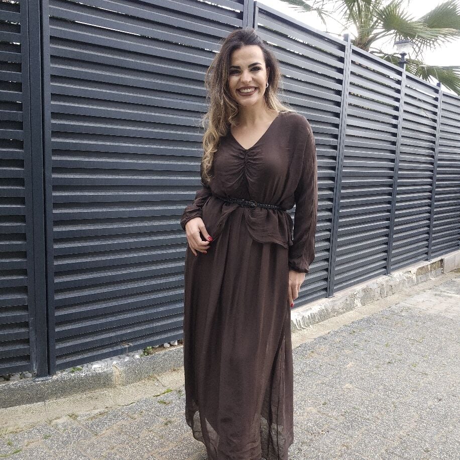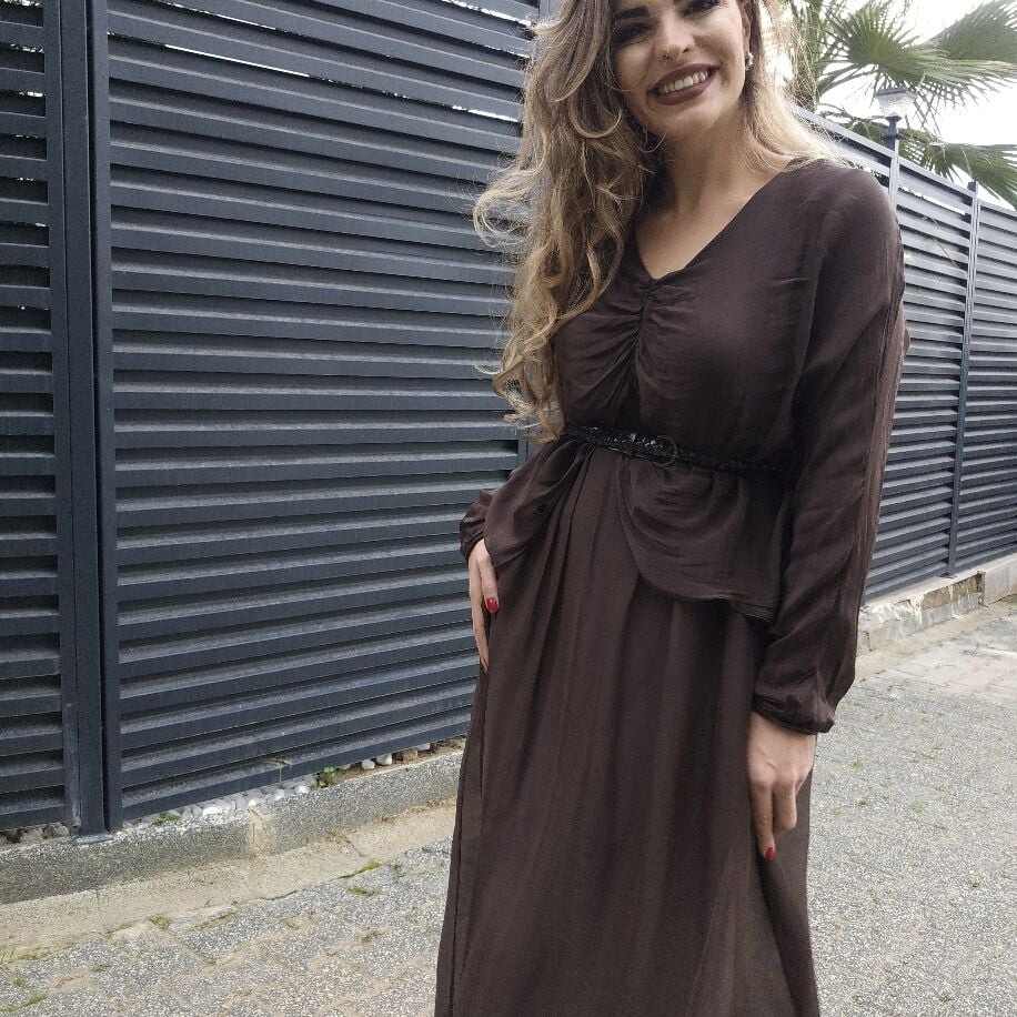 Bürüm İpek Elbise Kahverengi