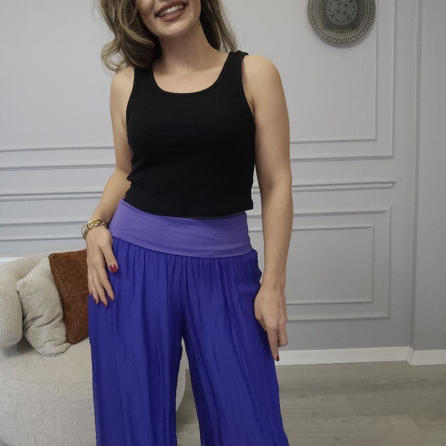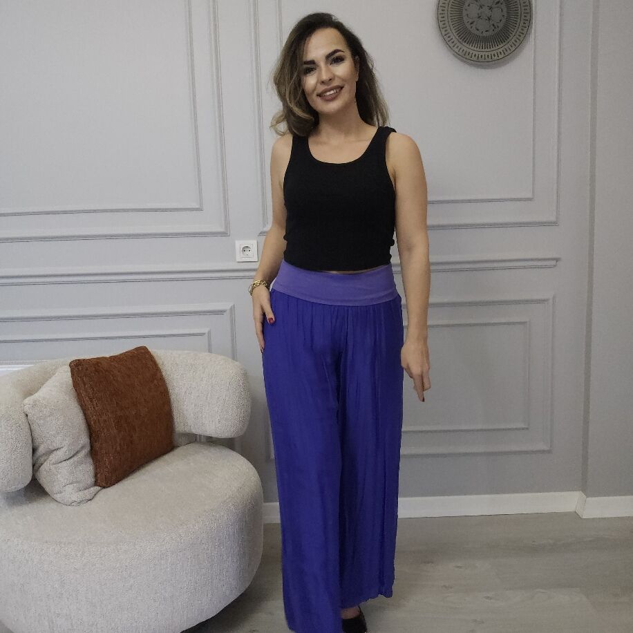 İtalyan ipeğinden zarif pantolon Beli lastikli tasarımı ile rahatlığı ön planda. Çeşitli renk seçenekleri ve 36 bedenden 44 bedene kadar uyum sağlar. Şıklığı ve konforu bir arada sunar.