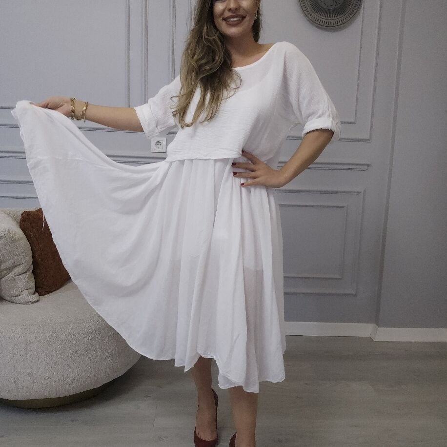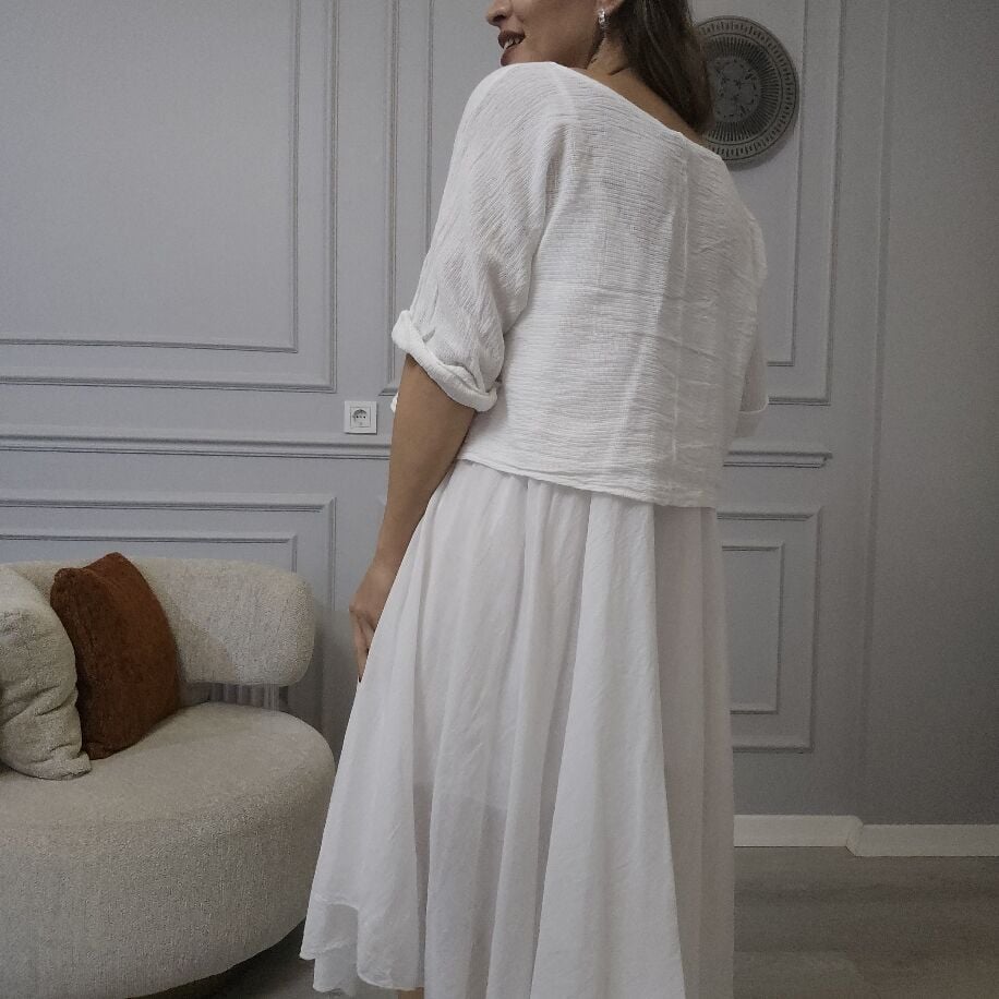İtalyan 2li Keten Elbise Beyaz