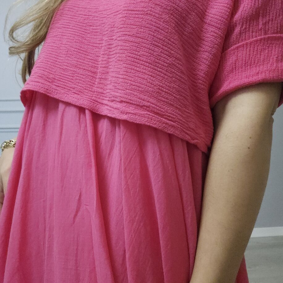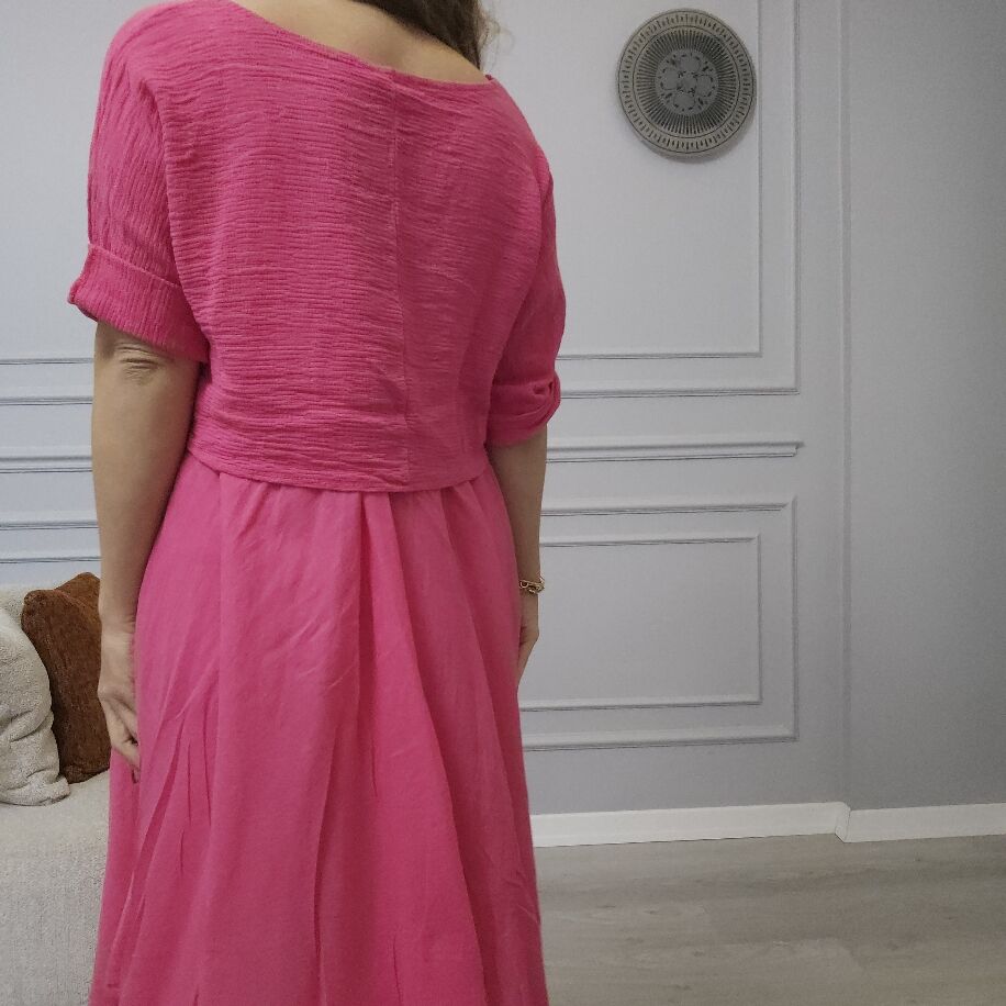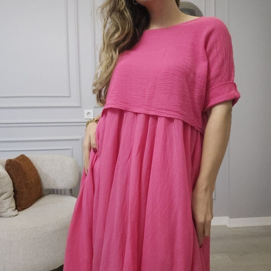 İtalyan 2li Keten Elbise K Pembe