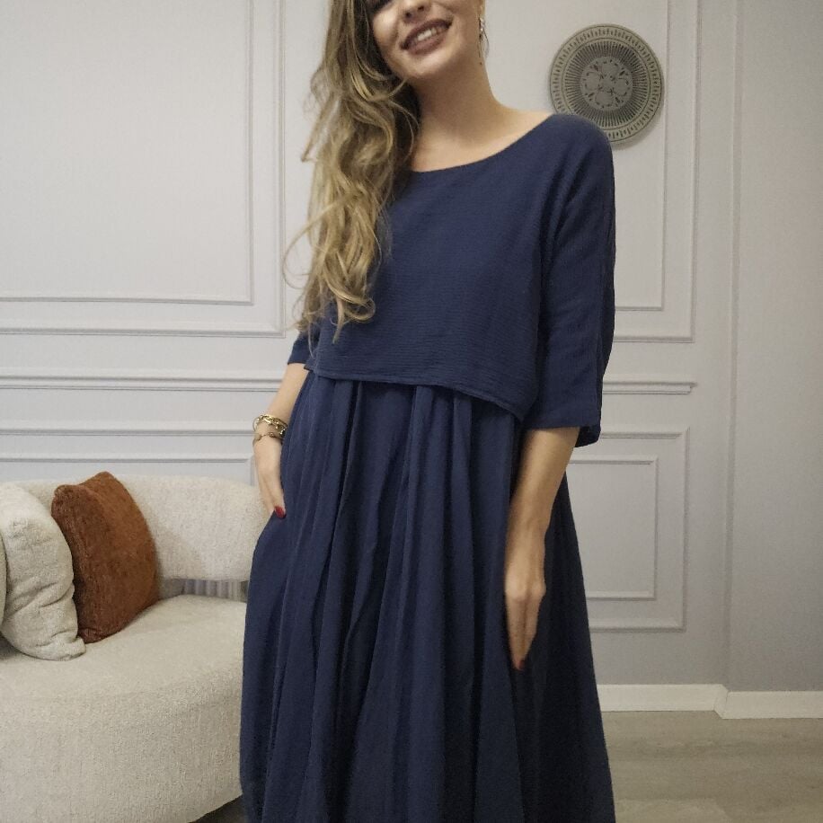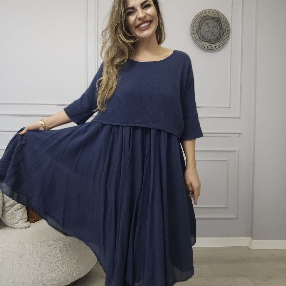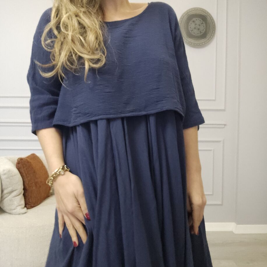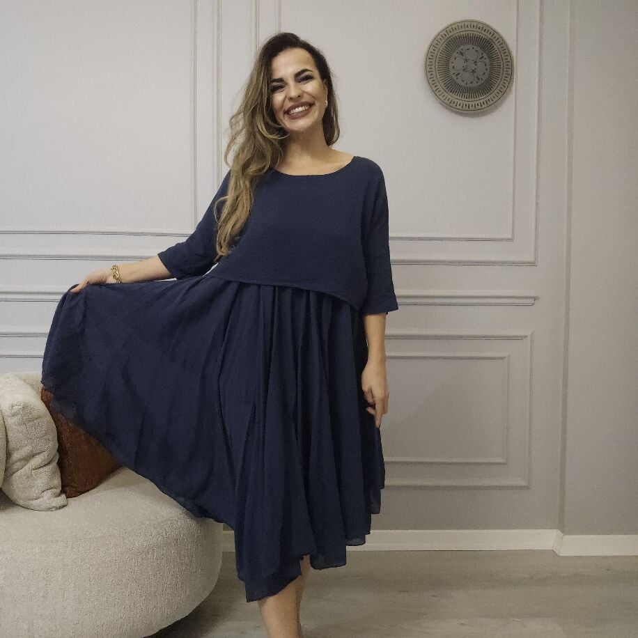 İtalyan 2li Keten Elbise Lacivert