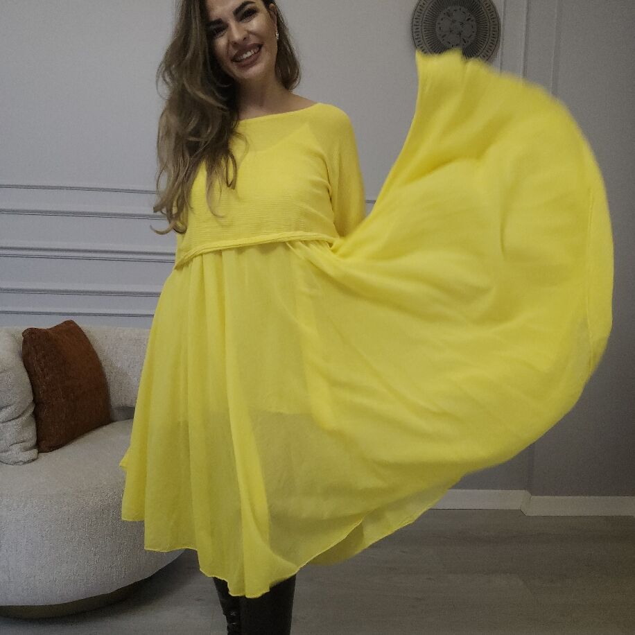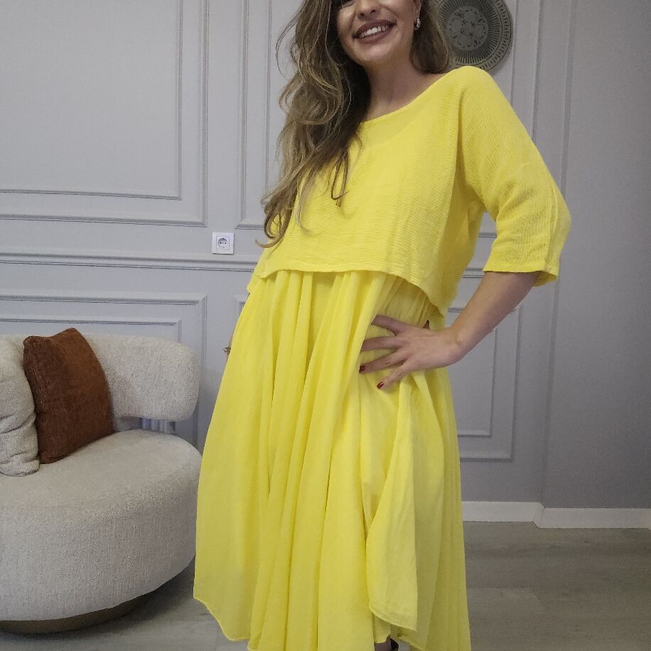 İtalyan 2li Keten Elbise Sarı