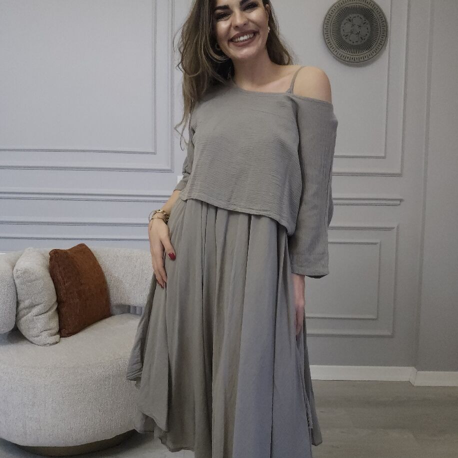 İtalyan 2li Keten Elbise Vizon
