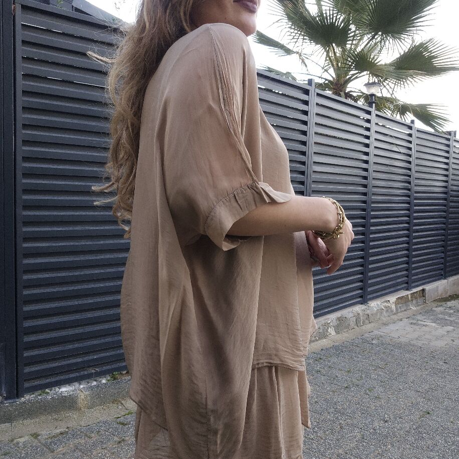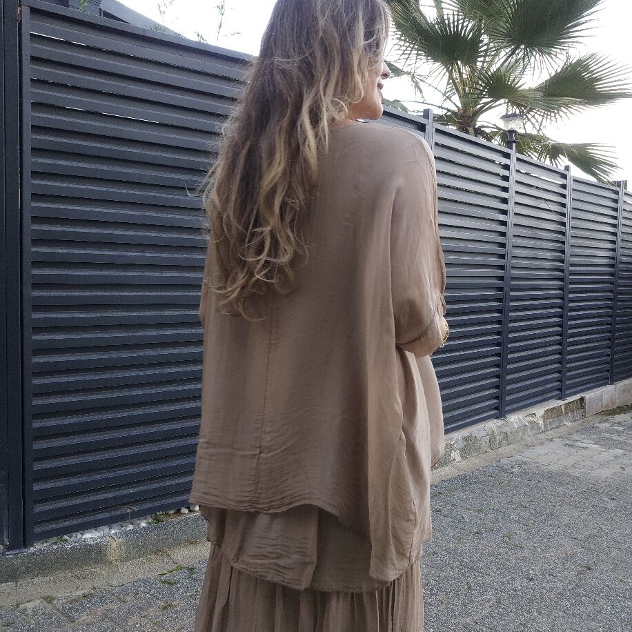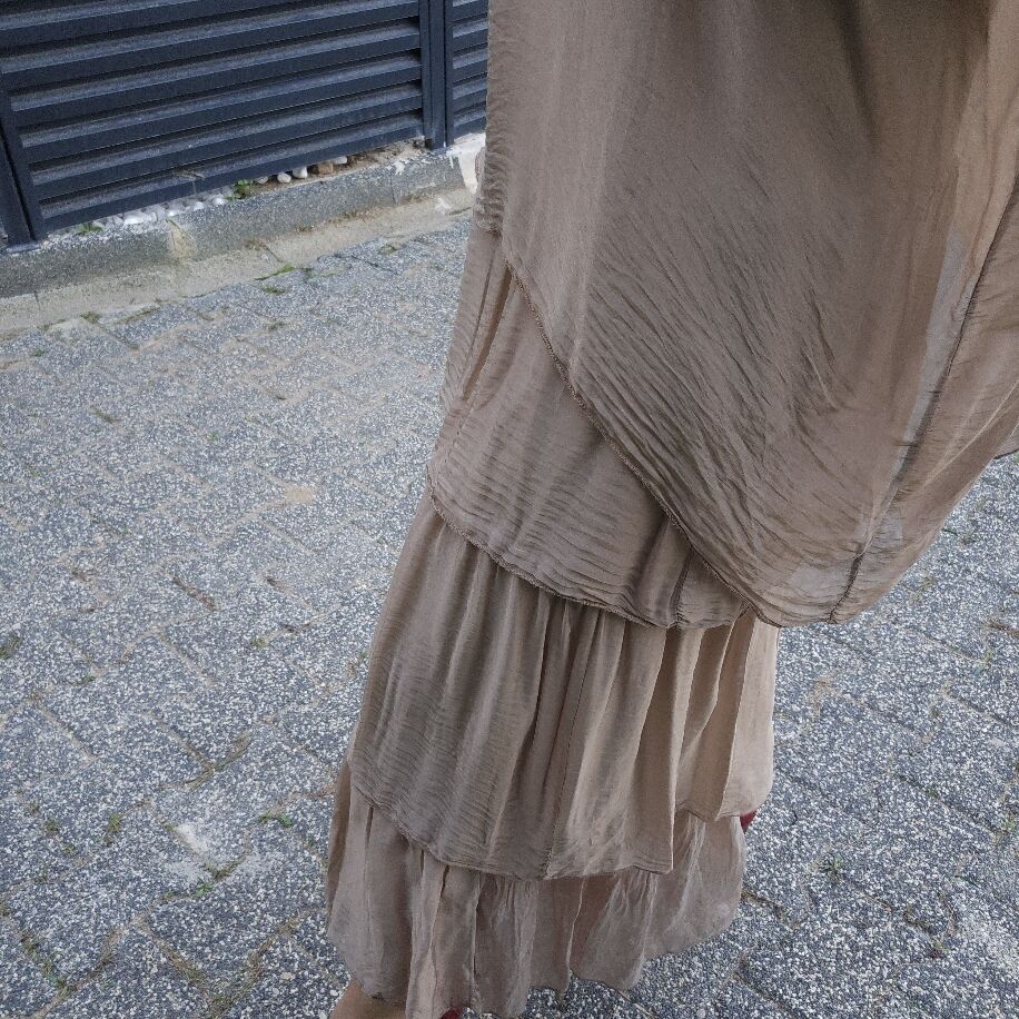 İtalyan 3 Kat İpek Elbise Camel