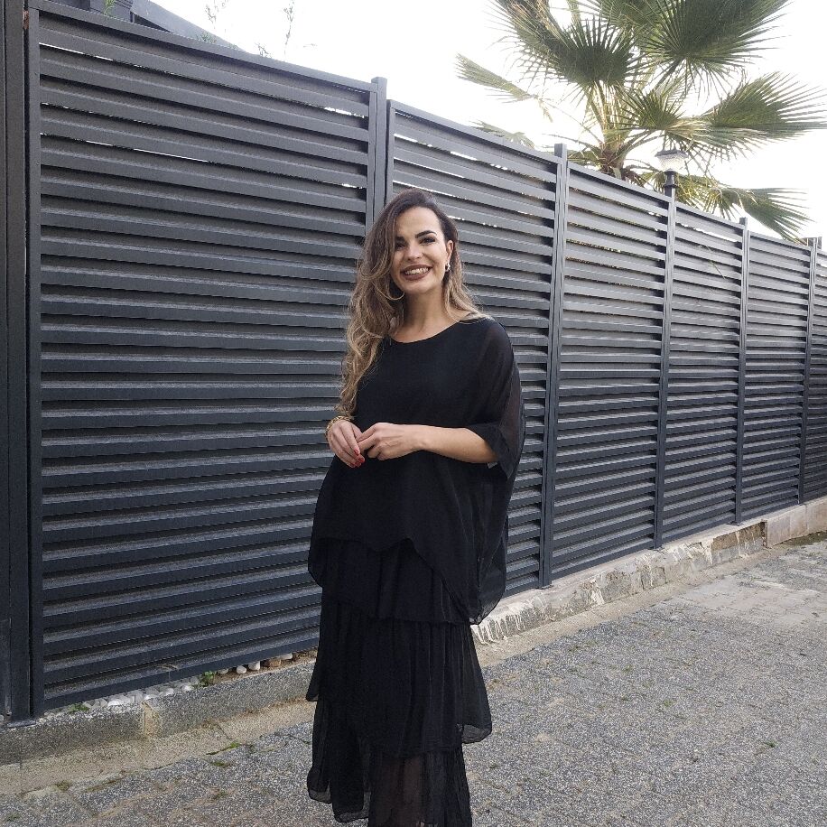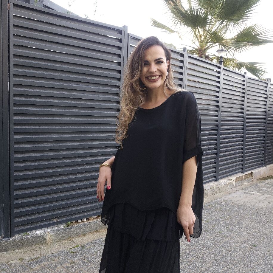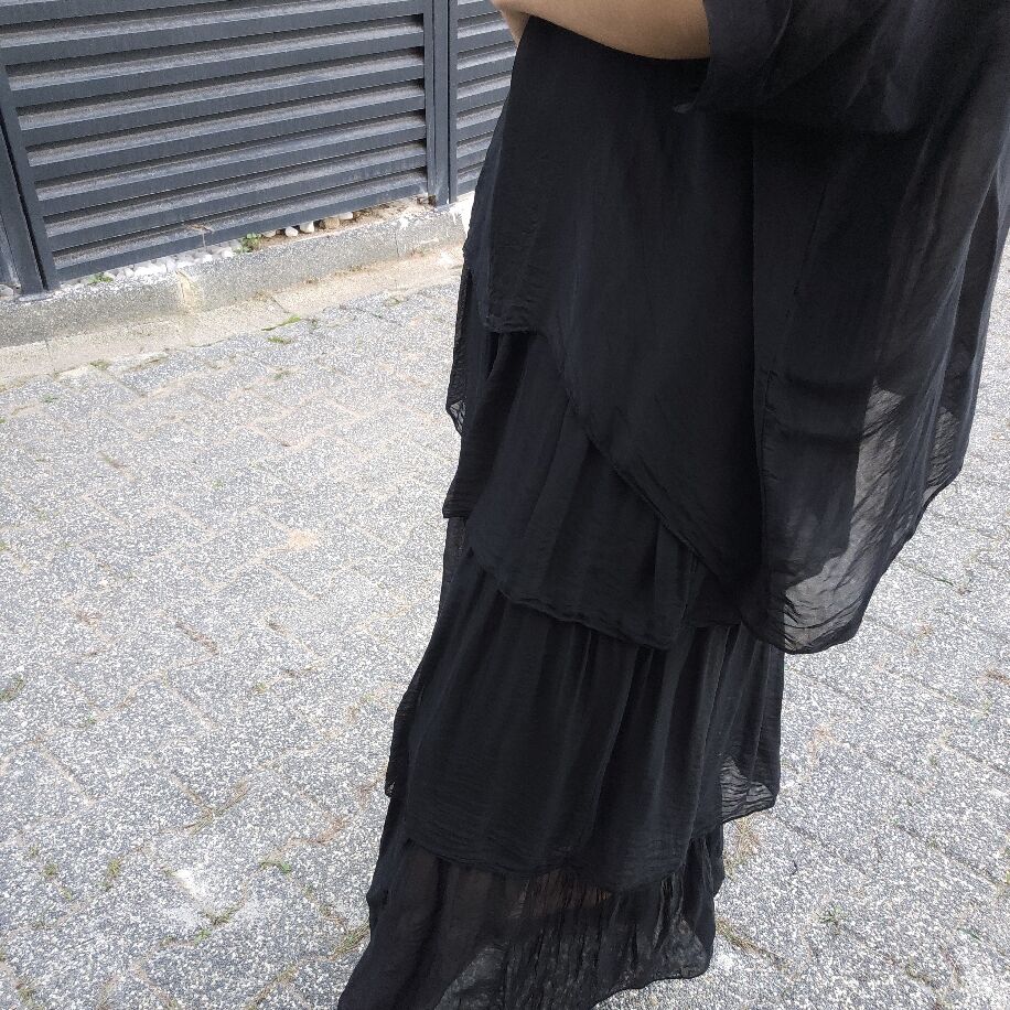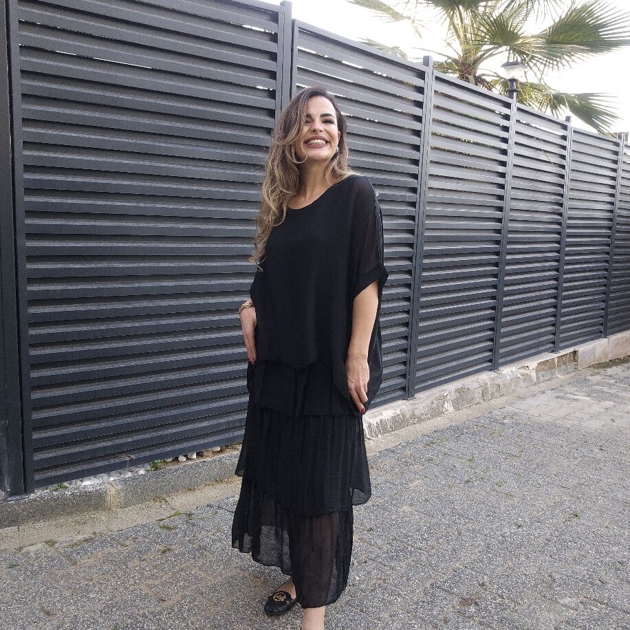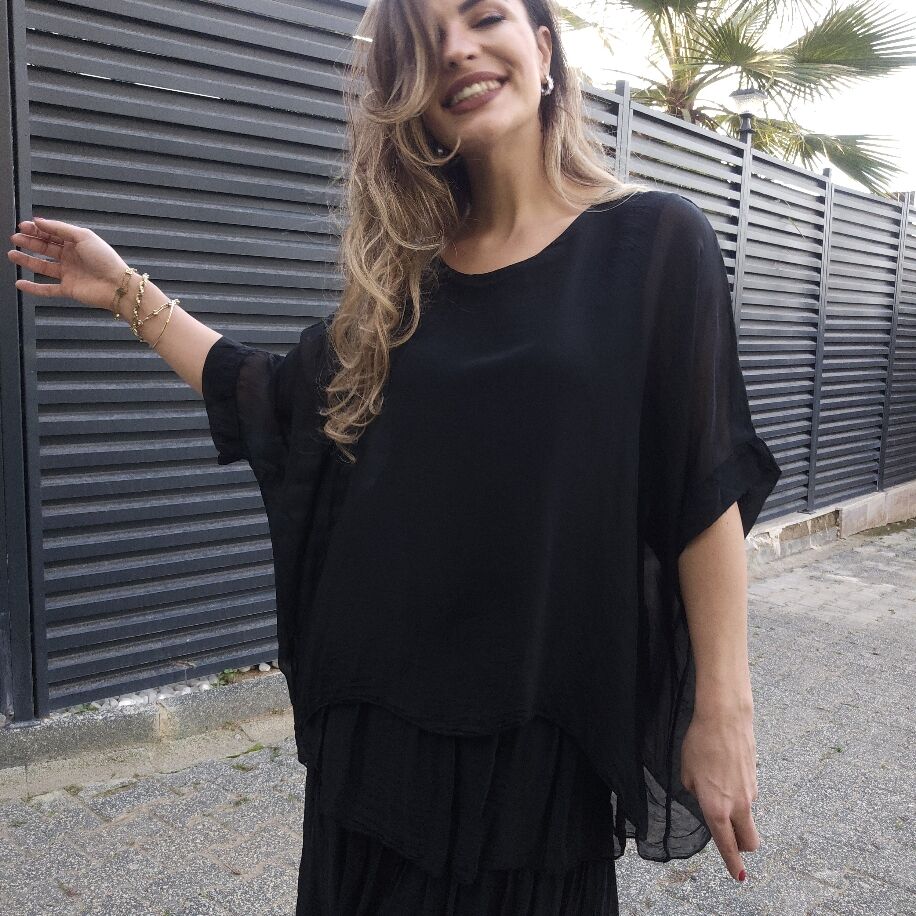 İtalyan 3 Kat İpek Elbise Siyah