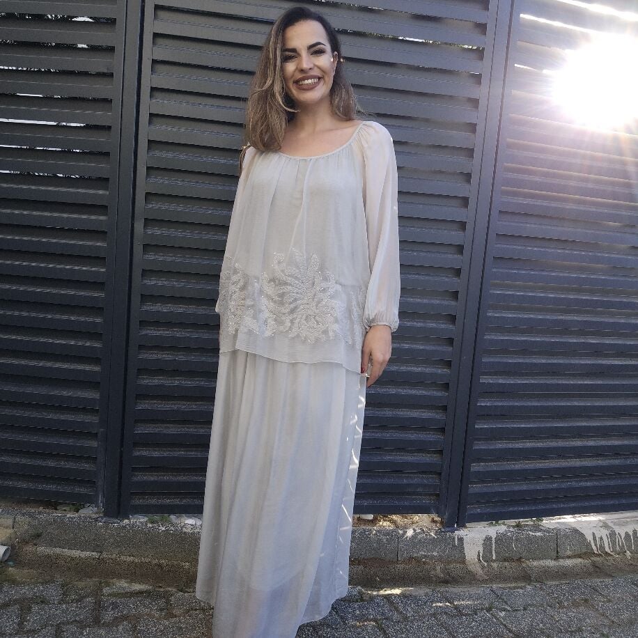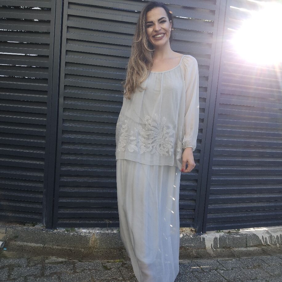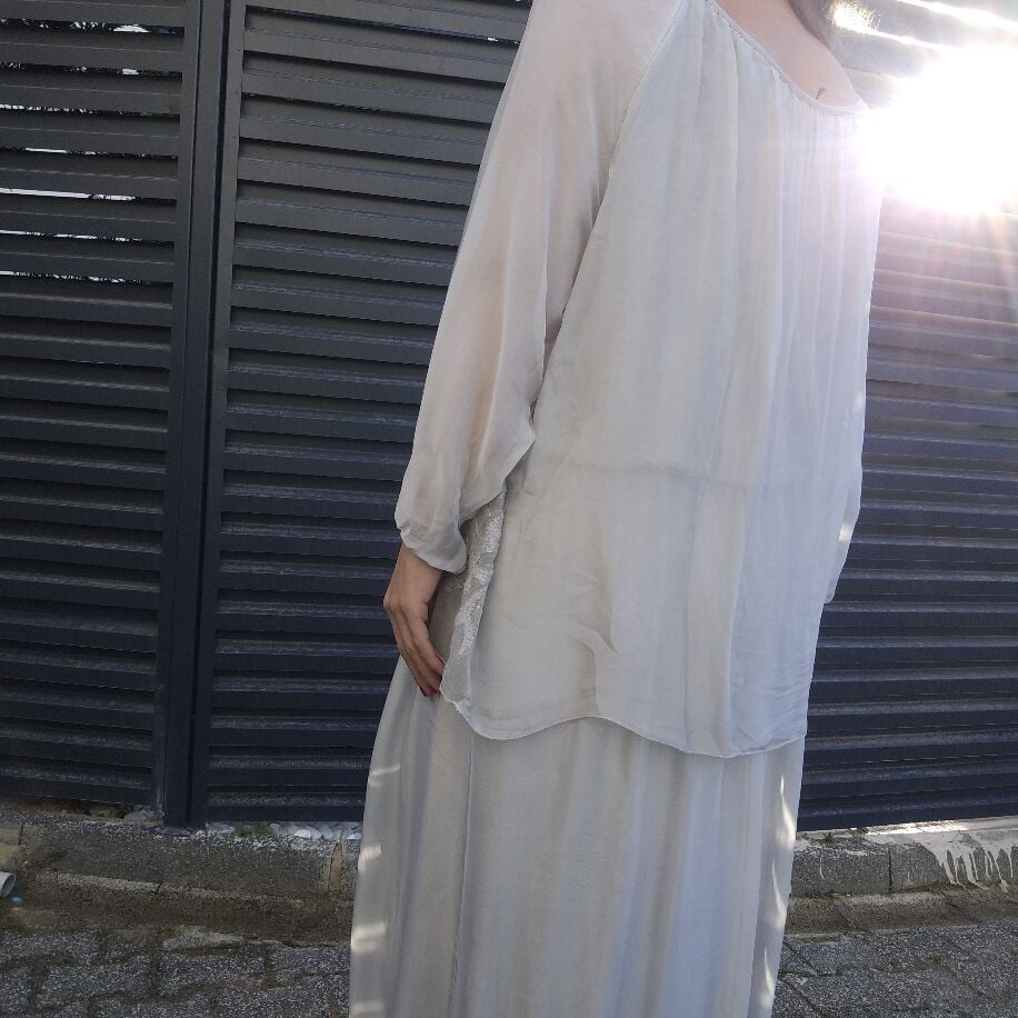 Tek Parça Şıklık, Çift Parça Görünüm! Gardırobunuzun yeni yıldızıyla tanışın! Saf İtalyan ipeği dokusuyla kendinizi hem çok hafif hem de çok asil hissedeceksiniz. Neden Bu Elbiseyi Çok Seveceksiniz? İllüzyon Tasarım: Etek ve bluz kombini gibi görünen bu özel parça aslında tek bir elbisedir; kombin yapma zahmetini ortadan kaldırır. Zarif İşlemeler: Bluzun etek ucunda yer alan, ışıltılı ve ince işçilikli detaylar elbiseye sofistike bir hava katar. Mükemmel Uyum: 36'dan 46 bedene kadar her vücut tipine uyum sağlayan konforlu standart beden kalıbı. Renk Şöleni: Her zevke hitap eden tam 7 farklı renk seçeneği! İster özel bir davette, ister şık bir akşam yemeğinde... Bu elbiseyle tüm bakışlar üzerinizde olacak.