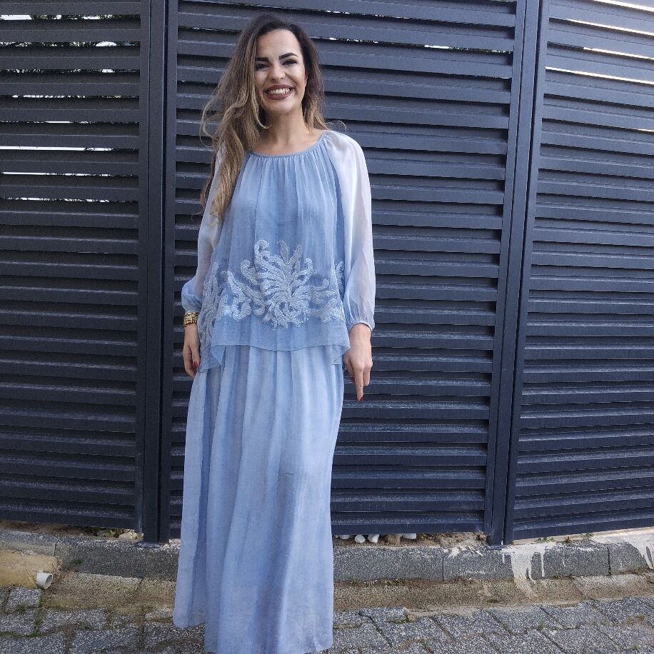 Tek Parça Şıklık, Çift Parça Görünüm! Gardırobunuzun yeni yıldızıyla tanışın! Saf İtalyan ipeği dokusuyla kendinizi hem çok hafif hem de çok asil hissedeceksiniz. Neden Bu Elbiseyi Çok Seveceksiniz? İllüzyon Tasarım: Etek ve bluz kombini gibi görünen bu özel parça aslında tek bir elbisedir; kombin yapma zahmetini ortadan kaldırır. Zarif İşlemeler: Bluzun etek ucunda yer alan, ışıltılı ve ince işçilikli detaylar elbiseye sofistike bir hava katar. Mükemmel Uyum: 36'dan 46 bedene kadar her vücut tipine uyum sağlayan konforlu standart beden kalıbı. Renk Şöleni: Her zevke hitap eden tam 7 farklı renk seçeneği! İster özel bir davette, ister şık bir akşam yemeğinde... Bu elbiseyle tüm bakışlar üzerinizde olacak.