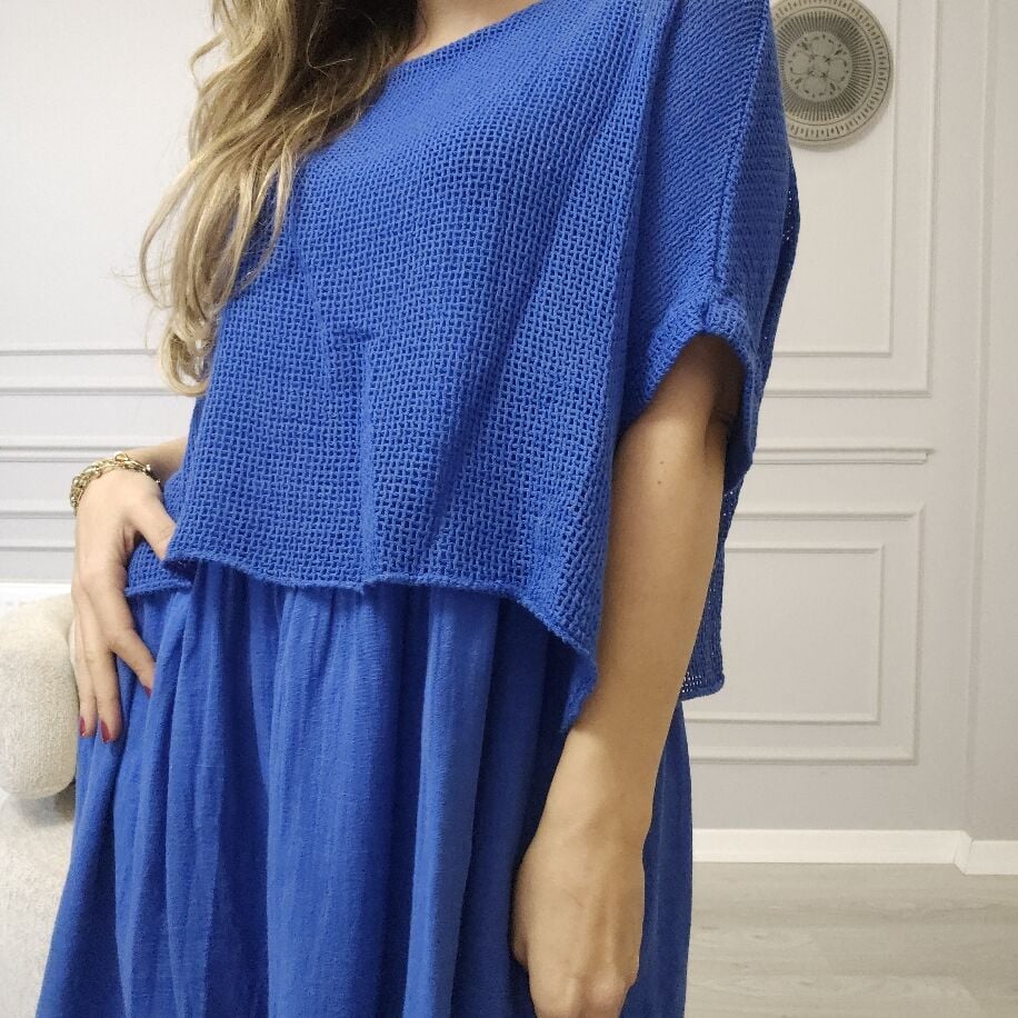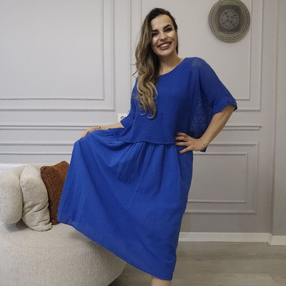 İtalyan File Keten Elbise Saks