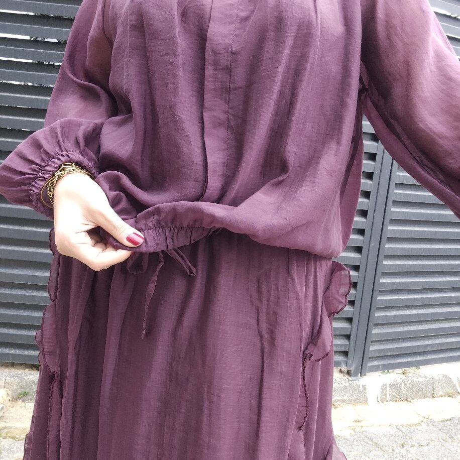 İtalya'dan özel olarak gelen, ipek-saten karışımlı bu iki parçalı takım ile zarafeti yeniden tanımlıyoruz. Hem kumaşın dokusuyla büyülenmeye hem de fırfır detaylarıyla hareket kazanmaya hazır mısınız? + Üst: Bisiklet yaka, şık düğme detayları, beli ve bilekleri lastikli konforlu kesim. + Alt: Beli lastikli, yan tarafındaki fırfır detaylarıyla stilinize dinamizm katan özel tasarım etek. Beden: 36 - 44 beden aralığına uyumludur. + Renkler: Birbirinden çekici renk seçenekleri mevcut! Zarafeti ve konforu bir arada sunan bu özel parçayı kaçırmayın.
