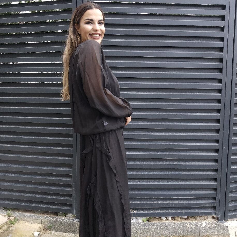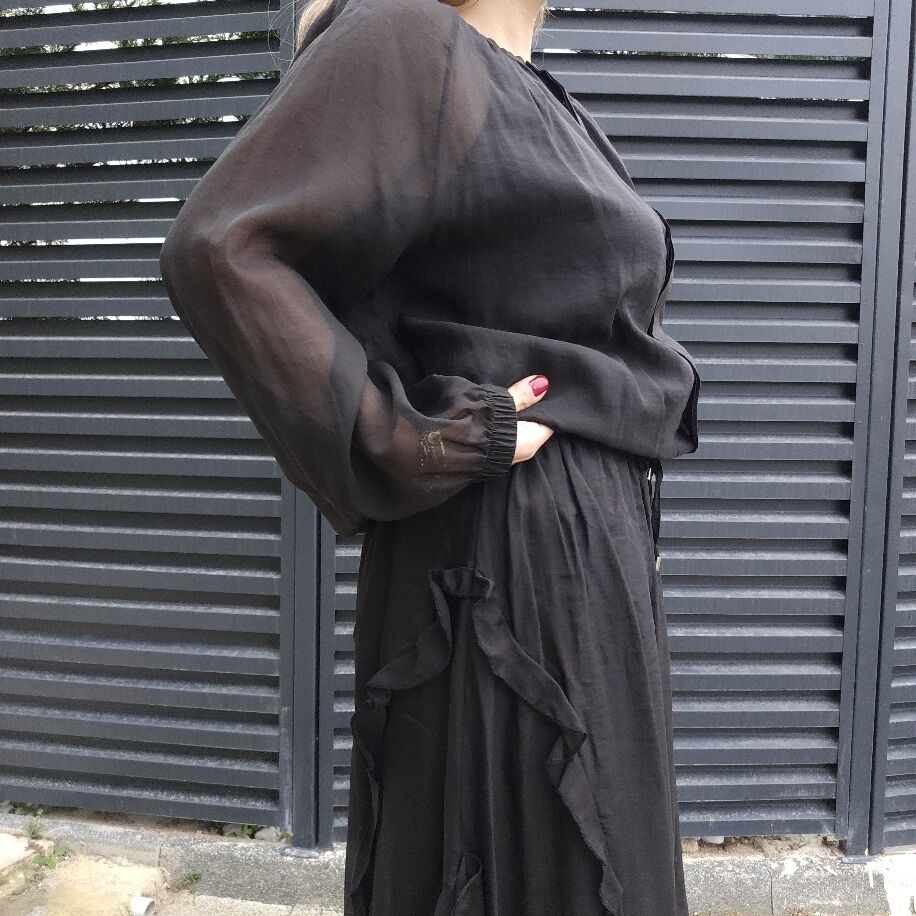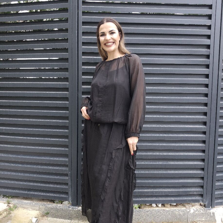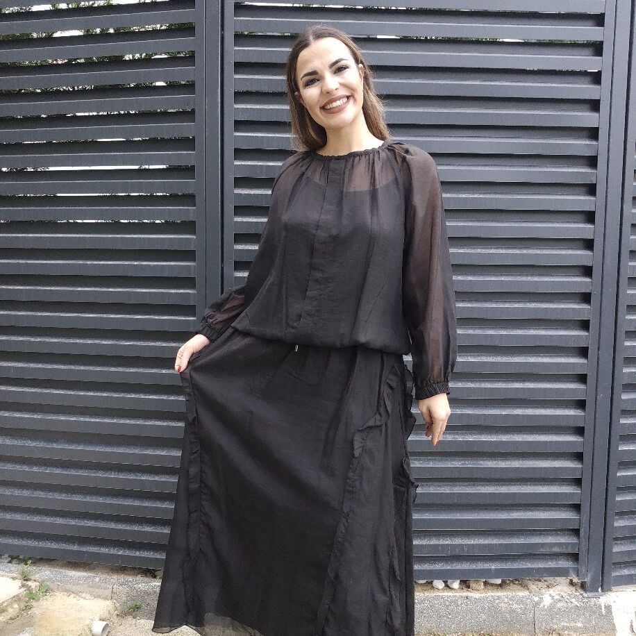 İtalyan Fırfırlı İpek Takım Siyah