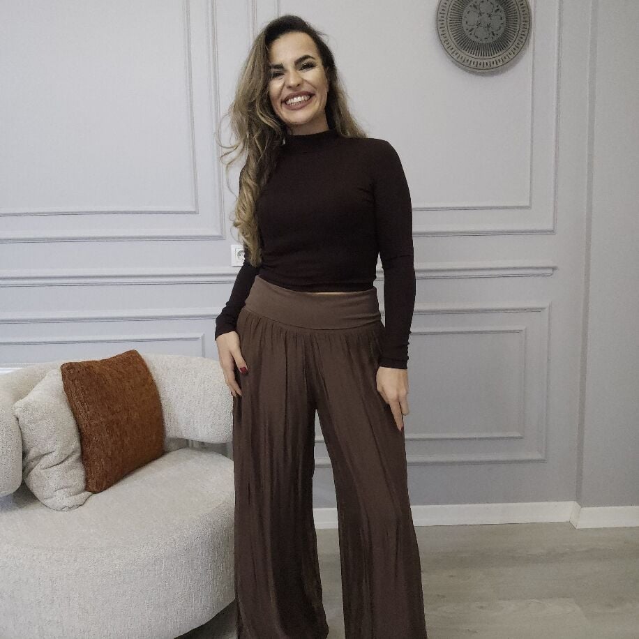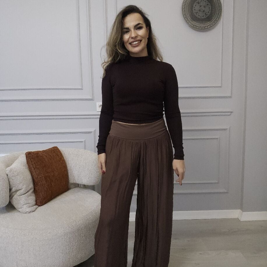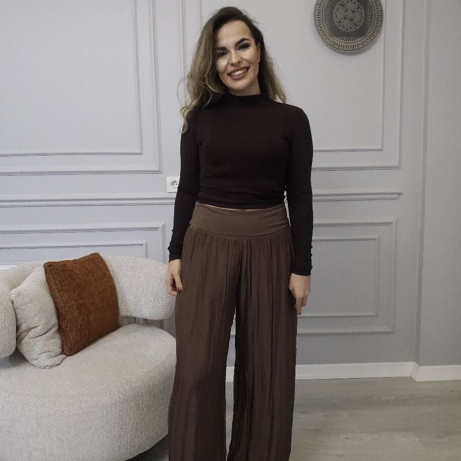 İtalyan İpek Pantolon Kahverengi