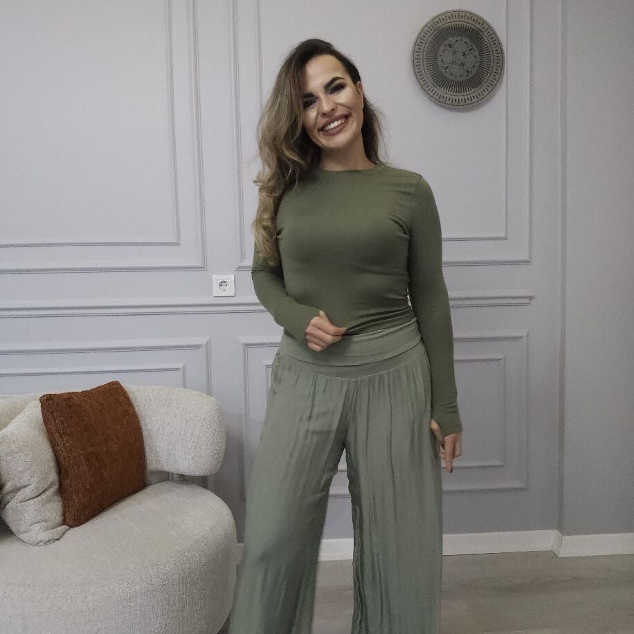 İtalyan ipeğinden zarif pantolon Beli lastikli tasarımı ile rahatlığı ön planda. Çeşitli renk seçenekleri ve 36 bedenden 44 bedene kadar uyum sağlar. Şıklığı ve konforu bir arada sunar.