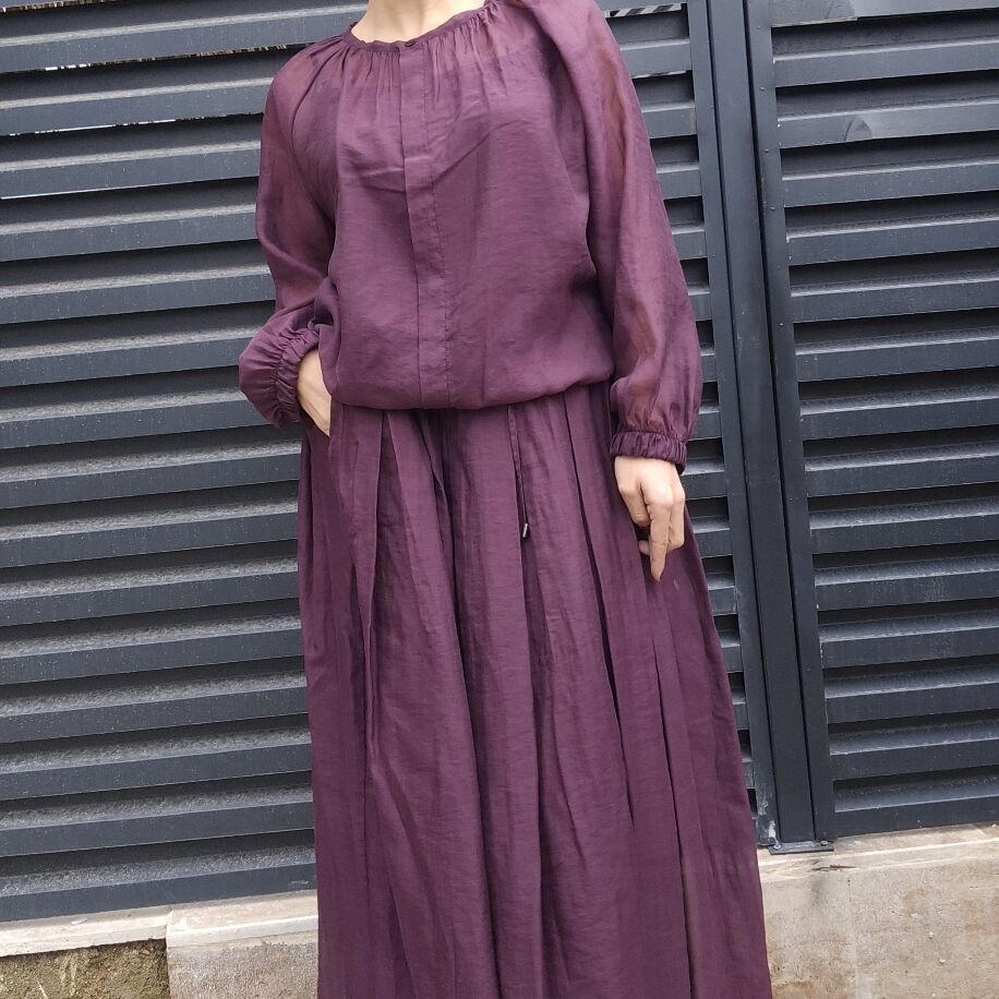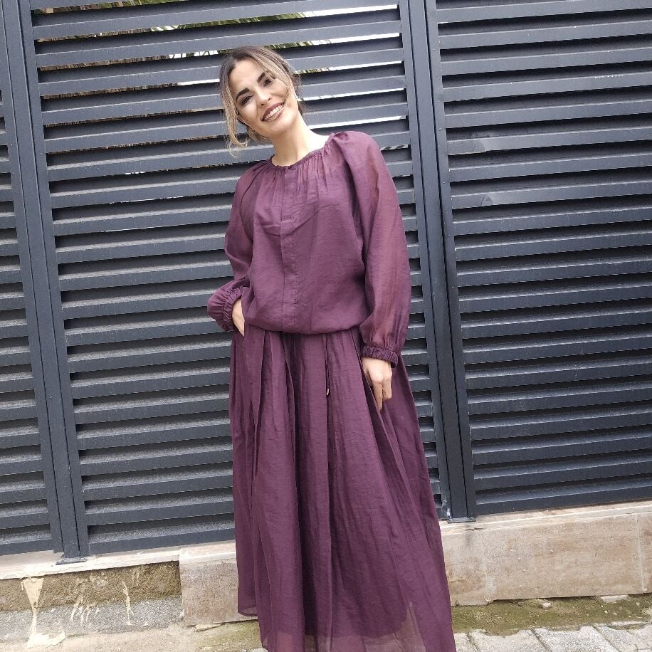 İtalyan Pileli İpek Takım Mürdüm
