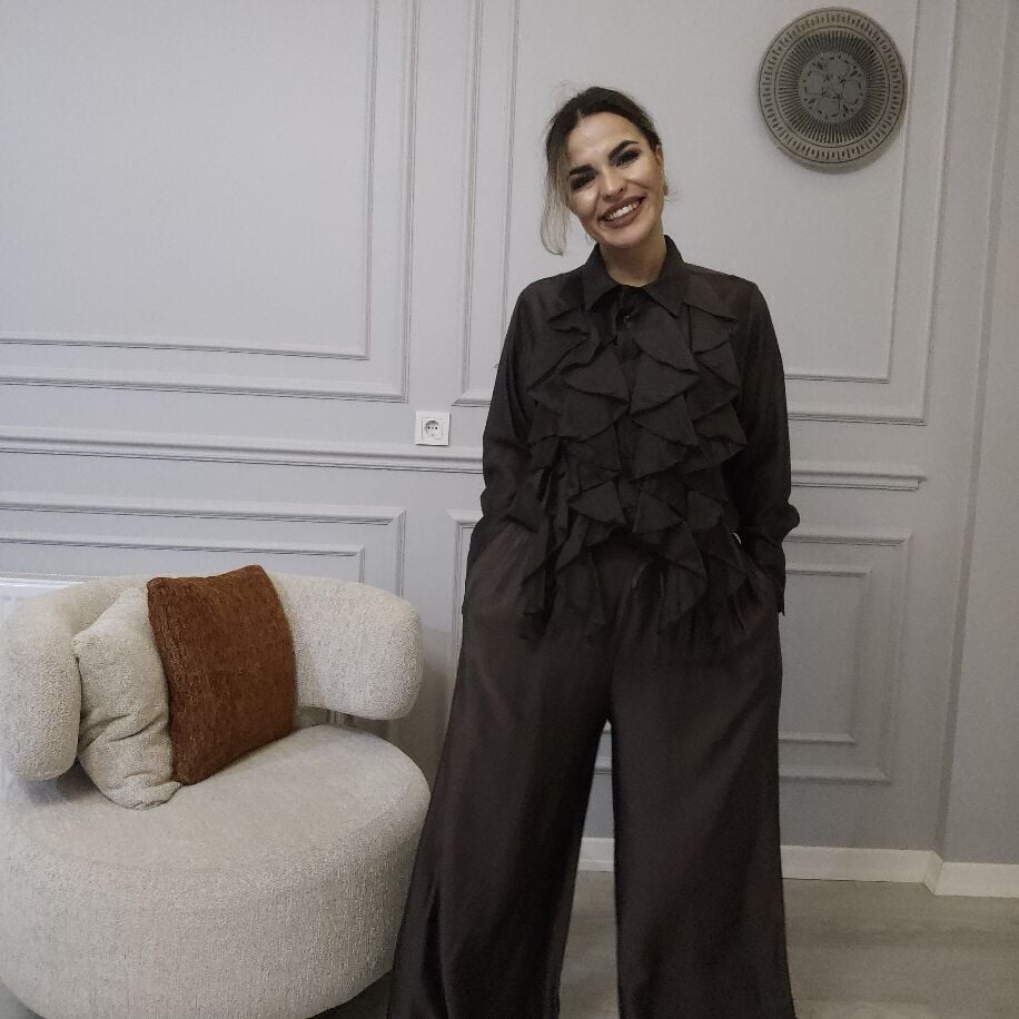 Bu özel set, iki ayrı parça olarak satılmaktadır. Pantolon, İtalyan sateninden üretilmiş olup 36'dan 46 bedene kadar uyum sağlar, over kesim ve ayarlanabilir bel lastiği ile rahatlık sunar. Şıklığını, kusursuz dikiş ve pratik ceplerle tamamlar. Her iki parça da kendi başına şıklığı ve konforu bir arada sunar.