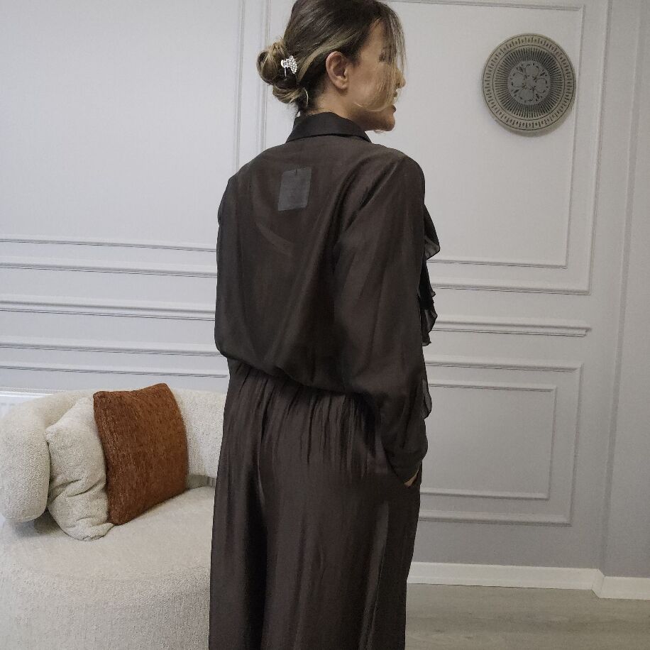 İtalyan Saten Pantolon Kahverengi