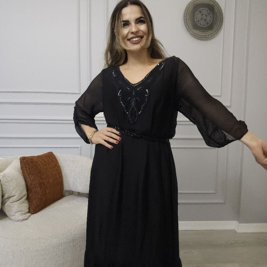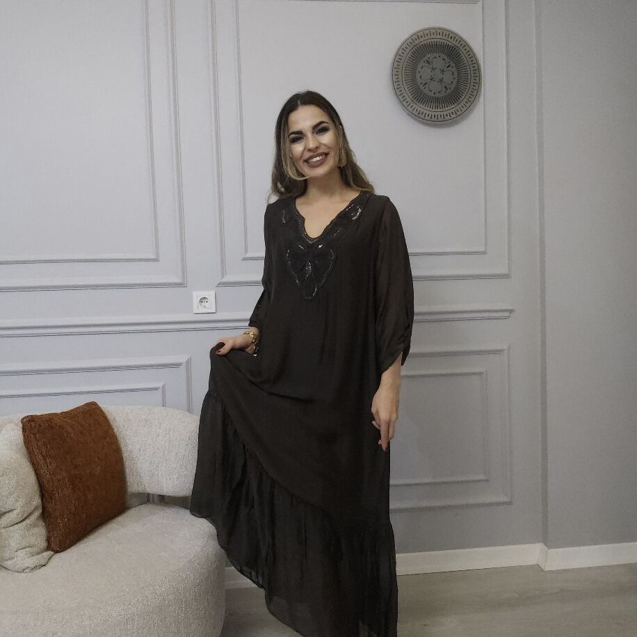 Zamansız şıklığın temsilcisi! İtalyan ipeğinden üretilmiş bu parça, tuvarkal kol detayı ve salaş modeliyle göz alıyor. V yakasında zarif dokuma ve payet detayları, her kombinde farklı bir şıklık sunar. Kemerle ya da farklı aksesuarlarla kolayca kombinlenebilir. 36'dan 44 bedene kadar uyum sağlar ve her ortamda şıklığınızı tamamlar.