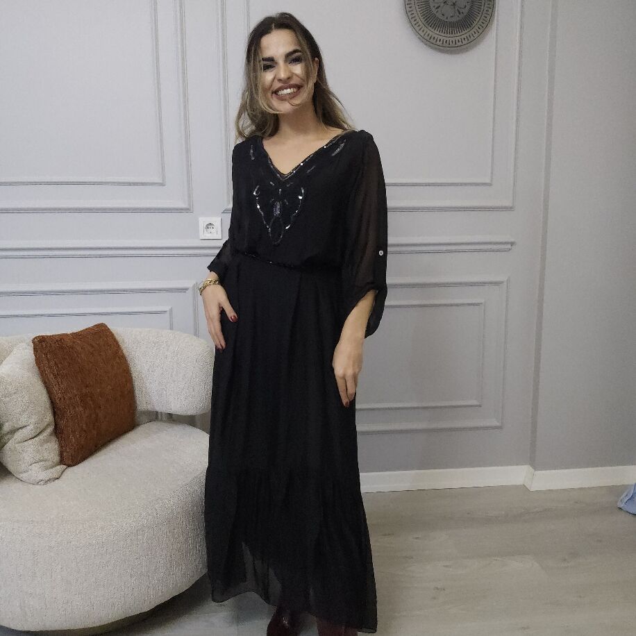 İtalyan V İpek Elbise Siyah