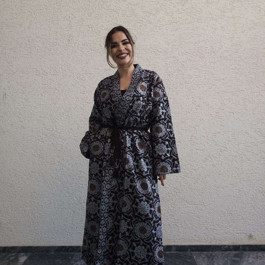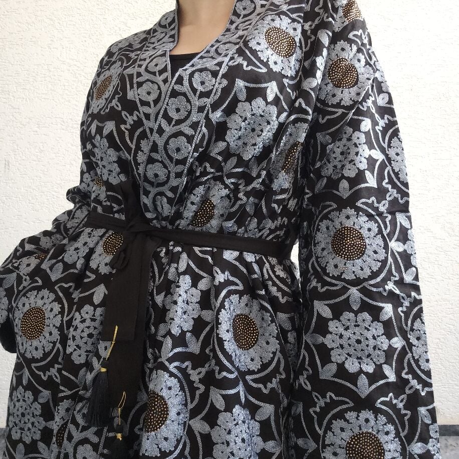 Göz Alıcı Bir Sanat Eseri: El İşlemesi İthal Kaftan Sıradanlığın ötesine geçmek ve girdiği her ortamda zarafetiyle iz bırakmak isteyen kadınlar için tasarlanan bu özel ithal kaftan, her detayında ustalığı barındırıyor. Neden Bu Parçayı Tercih Etmelisiniz? El Emeği Göz Nuru: Üzerindeki her bir desen, titizlikle işlenmiş gerçek bir el işçiliğidir. Gümüşün asaletini ve bronz detayların ışıltısını kumaşın kalitesinde hissedeceksiniz. Kusursuz Form: 46-50 beden aralığına uyumlu yapısıyla geniş bir kullanım yelpazesi sunar. Görseldeki 46 beden olup, özel kuşağı sayesinde belinizi dilediğiniz gibi vurgulayabilir, vücut formunuza göre kişiselleştirilmiş bir şıklık yaratabilirsiniz. Çok Yönlü Şıklık: İster özel bir davette, ister şık bir akşam yemeğinde; bu parça sizi "gecenin en çok konuşulan ismi" yapmaya aday. Unutmayın, bazı kıyafetler sadece giyilmez; onlar taşınır. Bu kaftan, sizin özgüvenli ve asil duruşunuzun en güçlü tamamlayıcısı olacak.