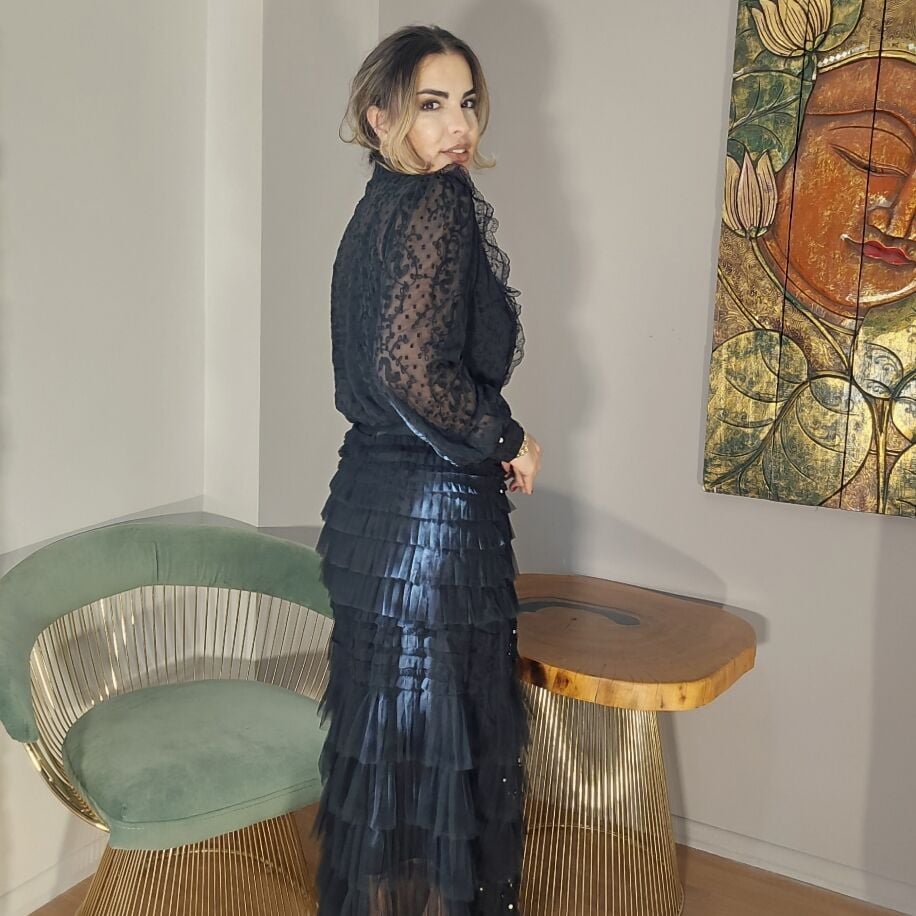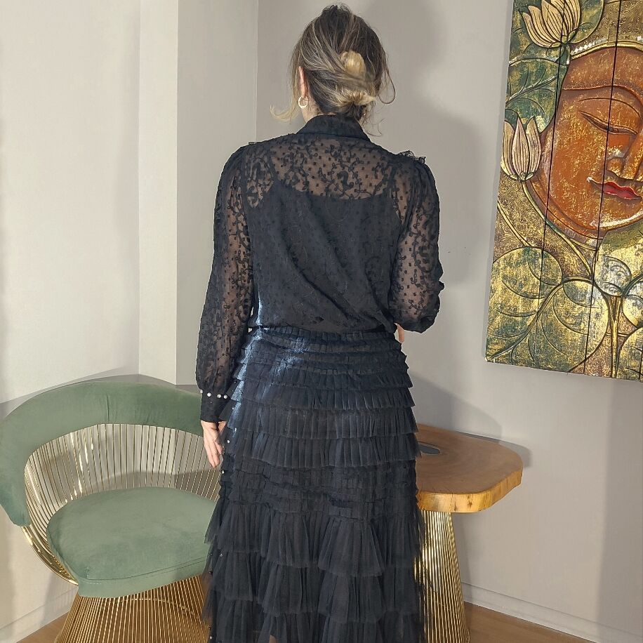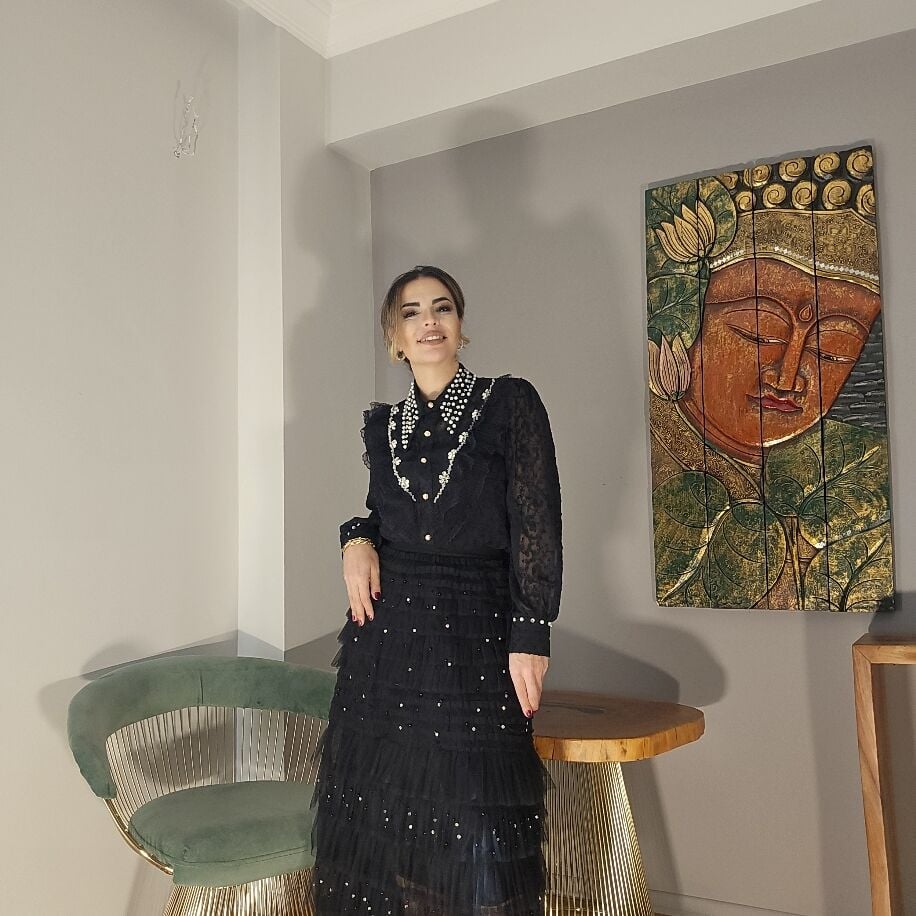 Fulden Edition’ın zarafetini yansıtan bu özel parça, şifon ve tül detaylarıyla göz kamaştırıyor. İnci ve taş süslemeleriyle eşsiz bir şıklık sunan bu parça, ithal kalitesiyle de öne çıkıyor. Ürün, bej ve siyah olmak üzere iki farklı renk seçeneğine sahip ve tek beden olarak 36'dan 42'ye kadar uyum sağlıyor. Günlük şıklığınızda ya da özel anlarınızda rahatlıkla tercih edebilirsiniz.