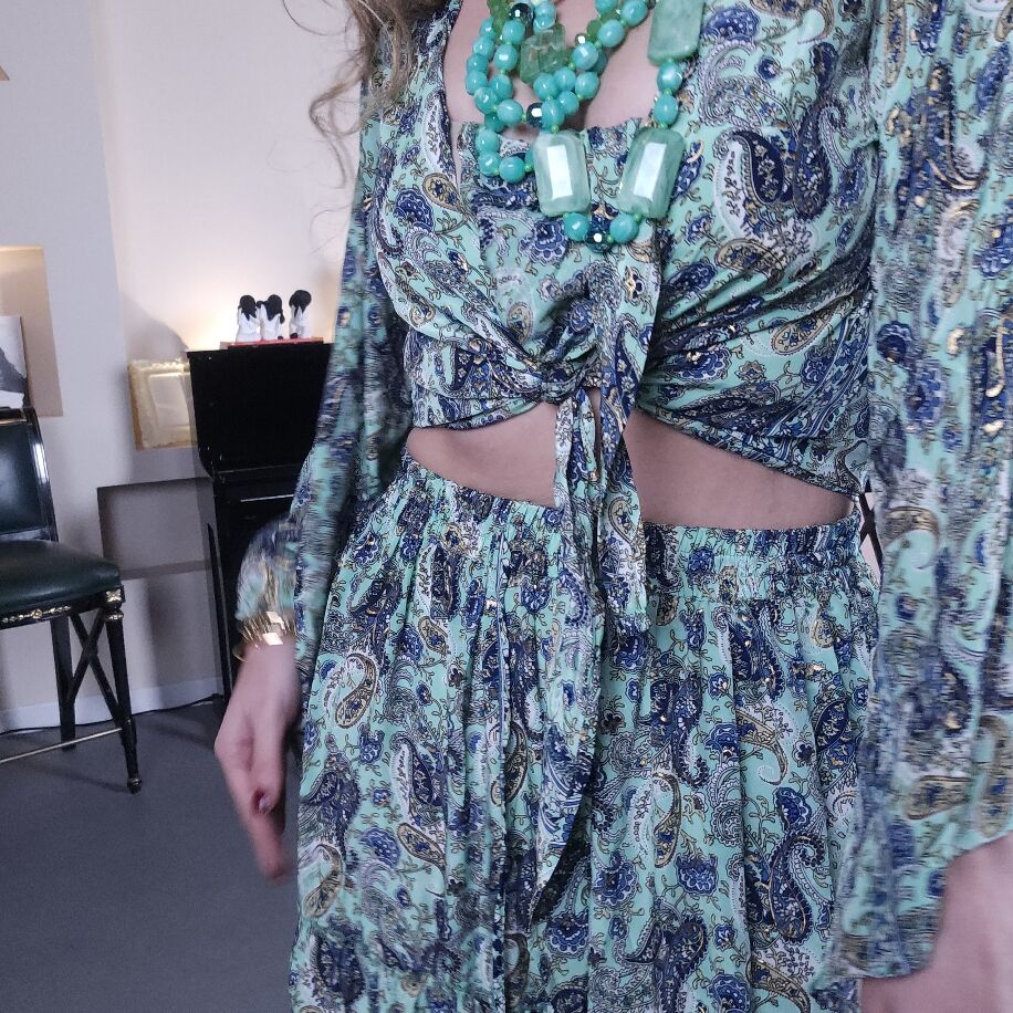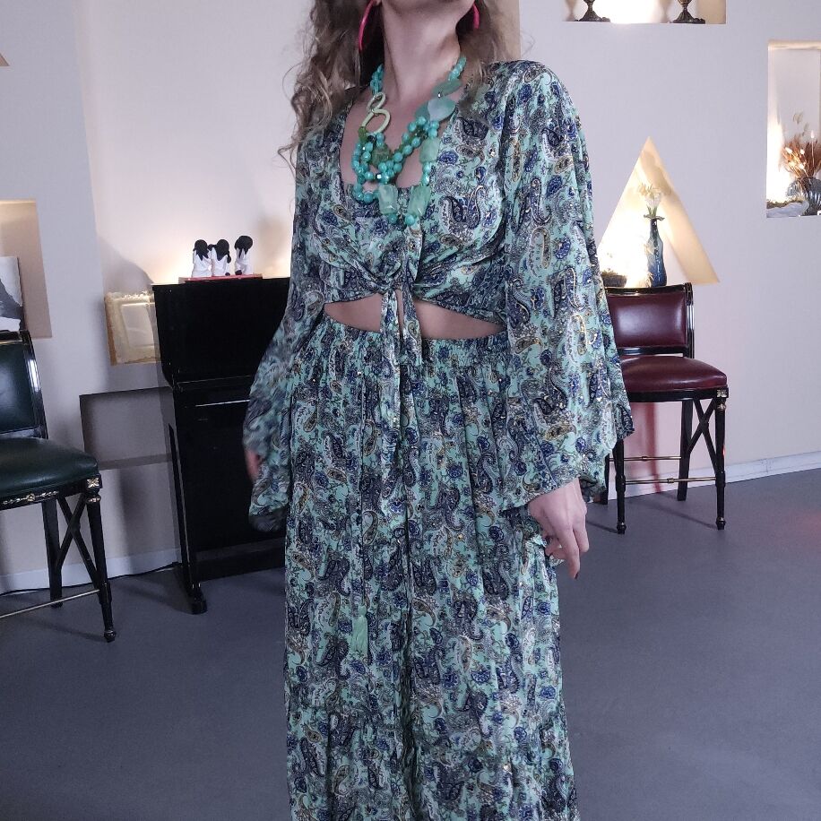 Büyüleyici desenler, ithal ipek kumaş kalitesi; bu kez maksi etek zarafetiyle buluştu. İşte gardırobunuzun yeni favorisi olacak o parça: Zarafetin En Uçuş Uçuş Hali: İthal Bohem Etekli Takım modelimizin romantizmine bayılacak! Her adımda etrafınızda dans eden bu maksi etek, size kendinizi bir masalın içindeymiş gibi hissettirecek. Neden Bu Takıma Sahip Olmalısınız? İki Parça, Sonsuz Seçenek: Takım olarak giydiğinizde kusursuz bir uyum; parçaları tek tek kullandığınızda ise onlarca farklı kombin imkanı. İmza Üst Tasarım: Yine o çok sevilen, ister kruvaze dolayarak ister önden bağlayarak kullanabileceğiniz, tarzınızı saniyeler içinde değiştiren üst parça. Zamansız Şıklık: Modası asla geçmeyecek desenler ve her vücut tipine uyum sağlayan dökümlü kesim. Farklı Renk Seçeneği: Ruh halinizi yansıtan rengi seçmeniz için tam farklı alternatif stoklarımızda! Tek Parça, Üç Farklı Mood: Bohem Günlük: Altına kovboy botları ve büyük küpelerle festival ruhunu yakalayın. Zarif Akşam: Şık bir topuklu ayakkabı ve gold detaylı bir kemerle akşam davetlerinin yıldızı olun. Rahat Şehirli: Sneaker ve salaş bir hırkayla hafta sonu kahvenizin tadını çıkarırken fark yaratın.