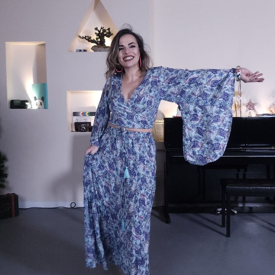 Büyüleyici desenler, ithal ipek kumaş kalitesi; bu kez maksi etek zarafetiyle buluştu. İşte gardırobunuzun yeni favorisi olacak o parça: Zarafetin En Uçuş Uçuş Hali: İthal Bohem Etekli Takım modelimizin romantizmine bayılacak! Her adımda etrafınızda dans eden bu maksi etek, size kendinizi bir masalın içindeymiş gibi hissettirecek. Neden Bu Takıma Sahip Olmalısınız? İki Parça, Sonsuz Seçenek: Takım olarak giydiğinizde kusursuz bir uyum; parçaları tek tek kullandığınızda ise onlarca farklı kombin imkanı. İmza Üst Tasarım: Yine o çok sevilen, ister kruvaze dolayarak ister önden bağlayarak kullanabileceğiniz, tarzınızı saniyeler içinde değiştiren üst parça. Zamansız Şıklık: Modası asla geçmeyecek desenler ve her vücut tipine uyum sağlayan dökümlü kesim. Farklı Renk Seçeneği: Ruh halinizi yansıtan rengi seçmeniz için tam farklı alternatif stoklarımızda! Tek Parça, Üç Farklı Mood: Bohem Günlük: Altına kovboy botları ve büyük küpelerle festival ruhunu yakalayın. Zarif Akşam: Şık bir topuklu ayakkabı ve gold detaylı bir kemerle akşam davetlerinin yıldızı olun. Rahat Şehirli: Sneaker ve salaş bir hırkayla hafta sonu kahvenizin tadını çıkarırken fark yaratın.