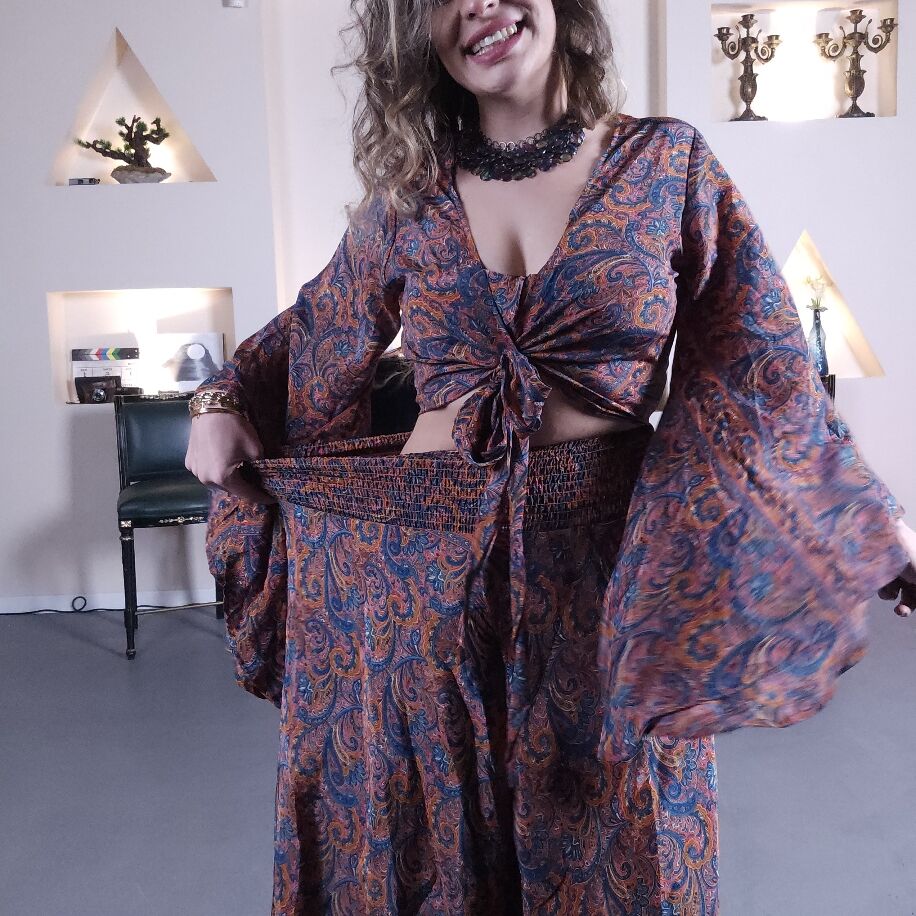 Gardırobunuzun Yeni "Zamansız" Yıldızı: Sanat Eseri Tasarım Takım Bu sadece bir takım değil; karakteri olan, her adımda "ben buradayım" diyen bir sanat eseri. İthal kumaşın o hafif, uçuş uçuş ipek dokusuyla hem özgürlüğü hem de üst düzey şıklığı aynı anda hissedeceksiniz. + Tek Parça, Sonsuz Stil Dönüşümü Bu takımın en büyüleyici özelliği, sizin yaratıcılığınıza uyum sağlaması: Mood: Şehirli ve Modern: Altına bir sneaker, üzerinize bir jean ceket ve minimal takılarla günün en tarz kişisi siz olun. Mood: Bohem ve Özgür: Sandaletler ve hasır bir şapkayla sahilde veya hafta sonu gezisinde uçuş uçuş pantolonunuzun tadını çıkarın. Mood: Gece ve Işıltı: Şık bir topuklu ayakkabı, gold aksesuarlar ve kruvaze bağladığınız üst ile akşam davetlerinin en "fark yaratan" kadınına dönüşün. Neden Bu Takıma Sahip Olmalısınız? Pantolon mu, Etek mi? Etek zarafetini pantolon konforuyla birleştiren, devasa genişlikte ve "sanat eseri" gibi dökülen alt parça. Kişiselleştirilebilir Üst: İster kruvaze dolayın, ister önden bağlayın. Tarzınızı o günkü keyfinize göre siz belirleyin. Renklerin Gücü: Her ten rengine, her zevke hitap eden tam 8 farklı renk seçeneği! Zamansız Yatırım: Moda geçer, stil kalır. Bu parça yıllar sonra bile gardırobunuzun en iddialı parçası olmaya devam edecek.