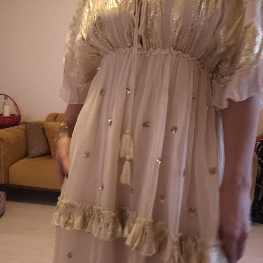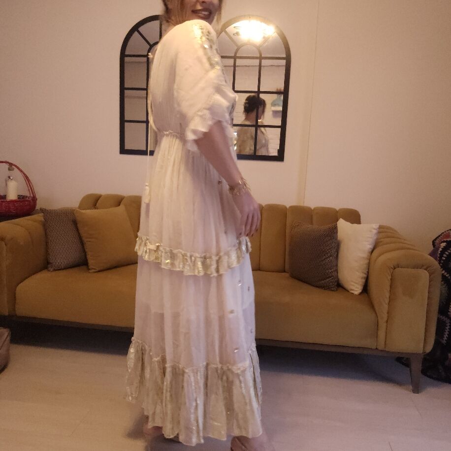 Zarafeti ilk bakışta hissettiren, akışkan formuyla fark yaratan özel bir parça Ön ve arka V yaka detayıyla feminen bir duruş sunar, vücudu yormadan kusursuz bir siluet oluşturur. Şifon ve akrilik ipten dokunan hafif yapısı sayesinde gün boyu konfor sağlar. Üzerindeki tüm işlemeler tamamen el işçiliğidir ve her detayı özel kılar. 36-44 beden aralığına uyumludur. 4 farklı renk seçeneği ile her zevke hitap eder. Özel günlerden günlük şıklığa kadar her anınıza eşlik edecek zamansız bir tasarım.