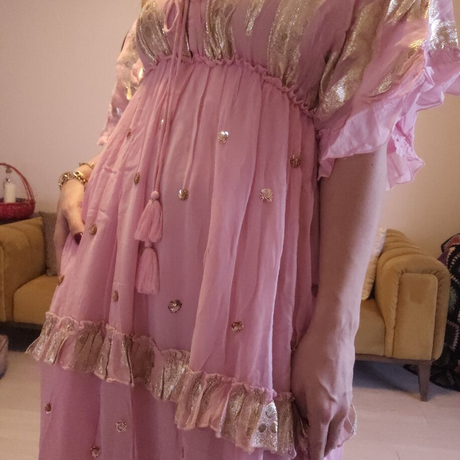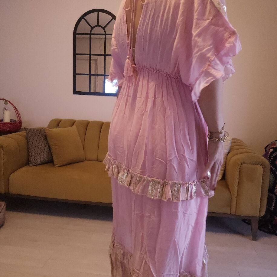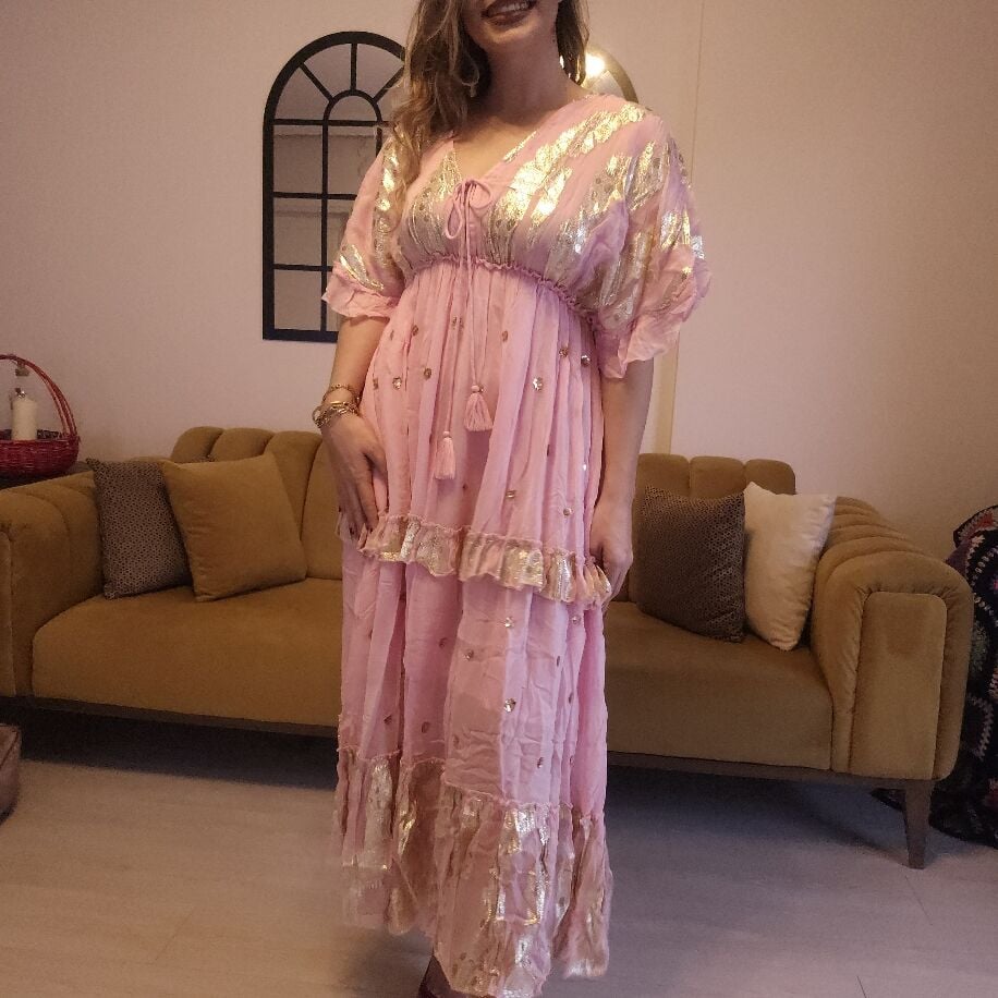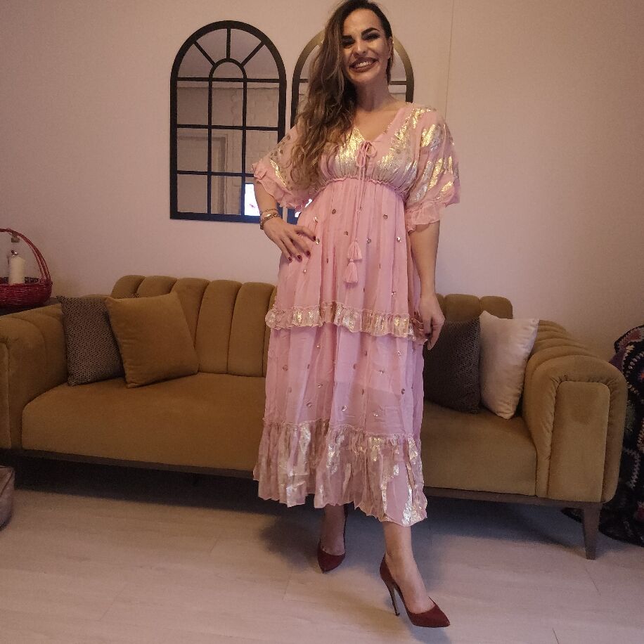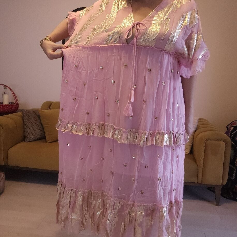İthal Şifon Elbise Pembe