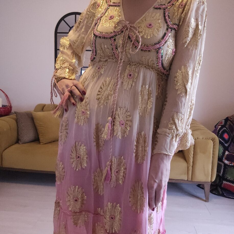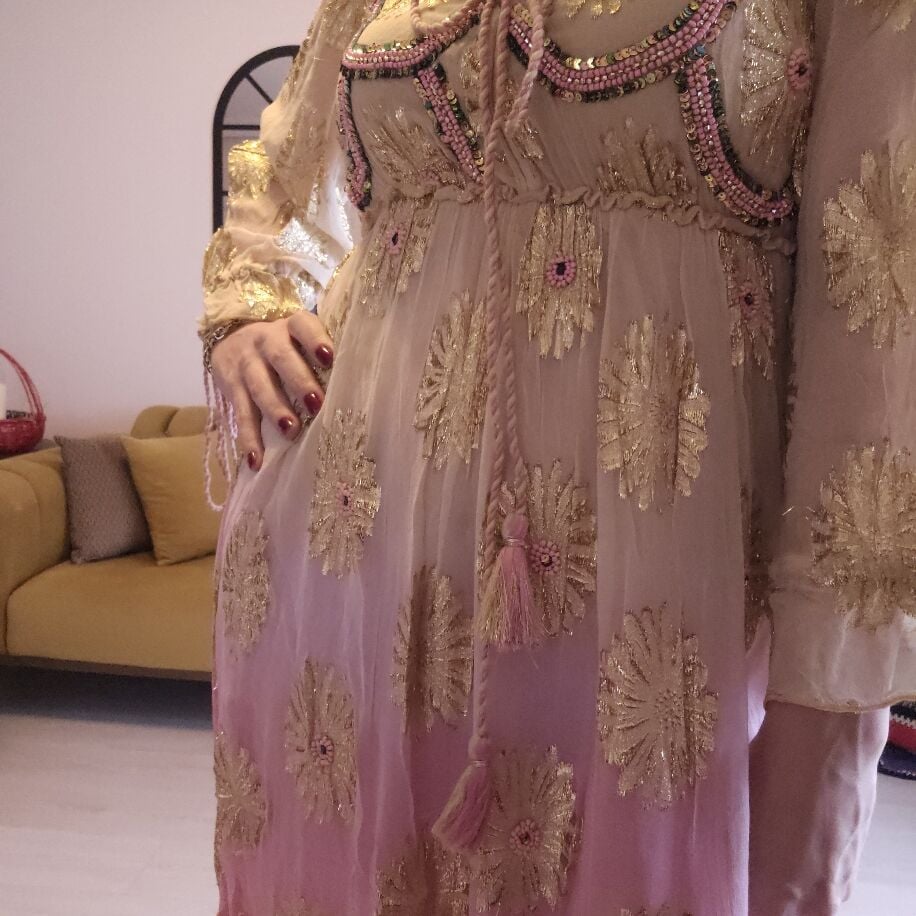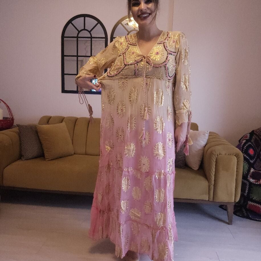 İthal Şifon Elbise Somon Pembe