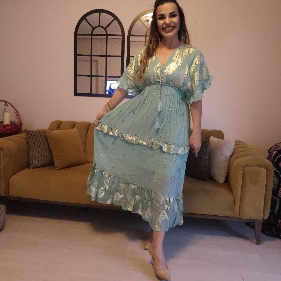 Zarafeti ilk bakışta hissettiren, akışkan formuyla fark yaratan özel bir parça Ön ve arka V yaka detayıyla feminen bir duruş sunar, vücudu yormadan kusursuz bir siluet oluşturur. Şifon ve akrilik ipten dokunan hafif yapısı sayesinde gün boyu konfor sağlar. Üzerindeki tüm işlemeler tamamen el işçiliğidir ve her detayı özel kılar. 36-44 beden aralığına uyumludur. 4 farklı renk seçeneği ile her zevke hitap eder. Özel günlerden günlük şıklığa kadar her anınıza eşlik edecek zamansız bir tasarım.