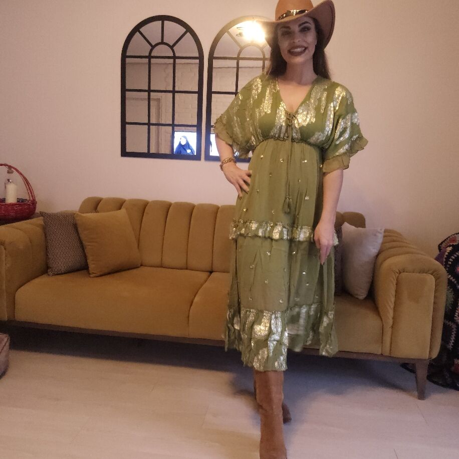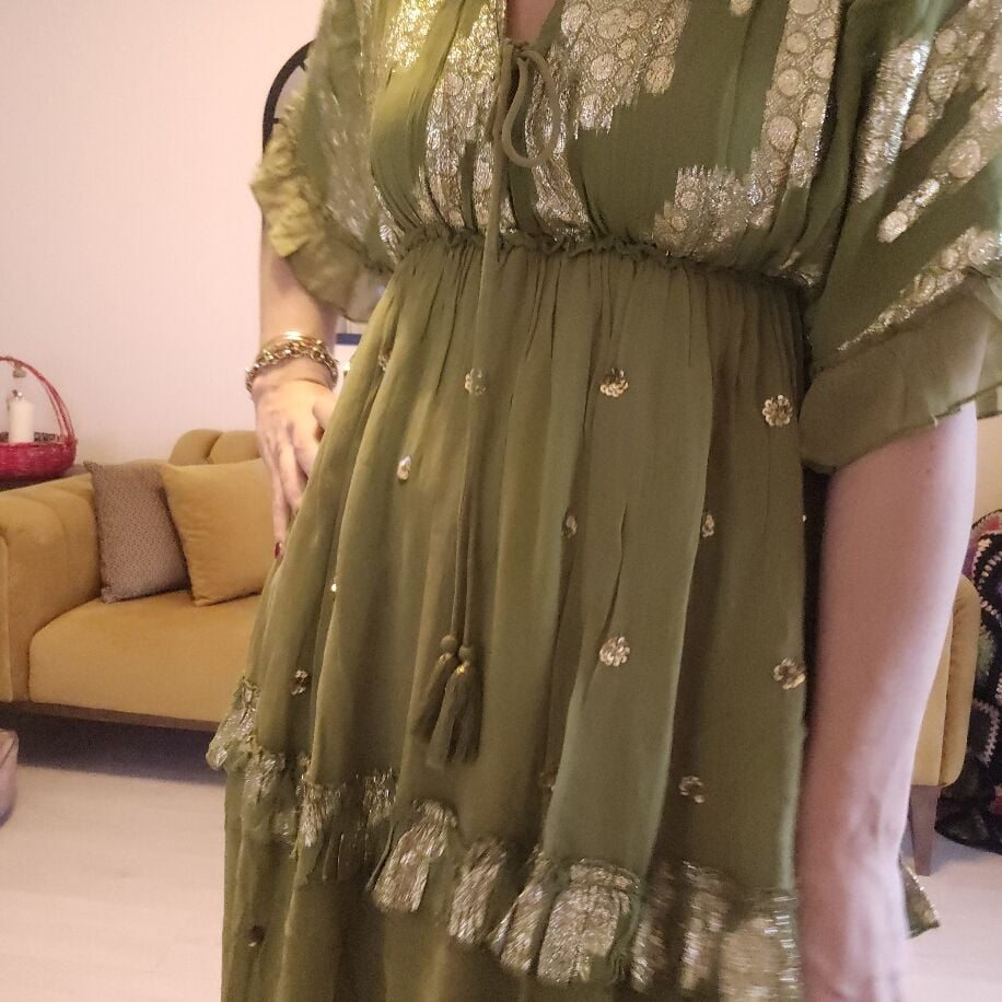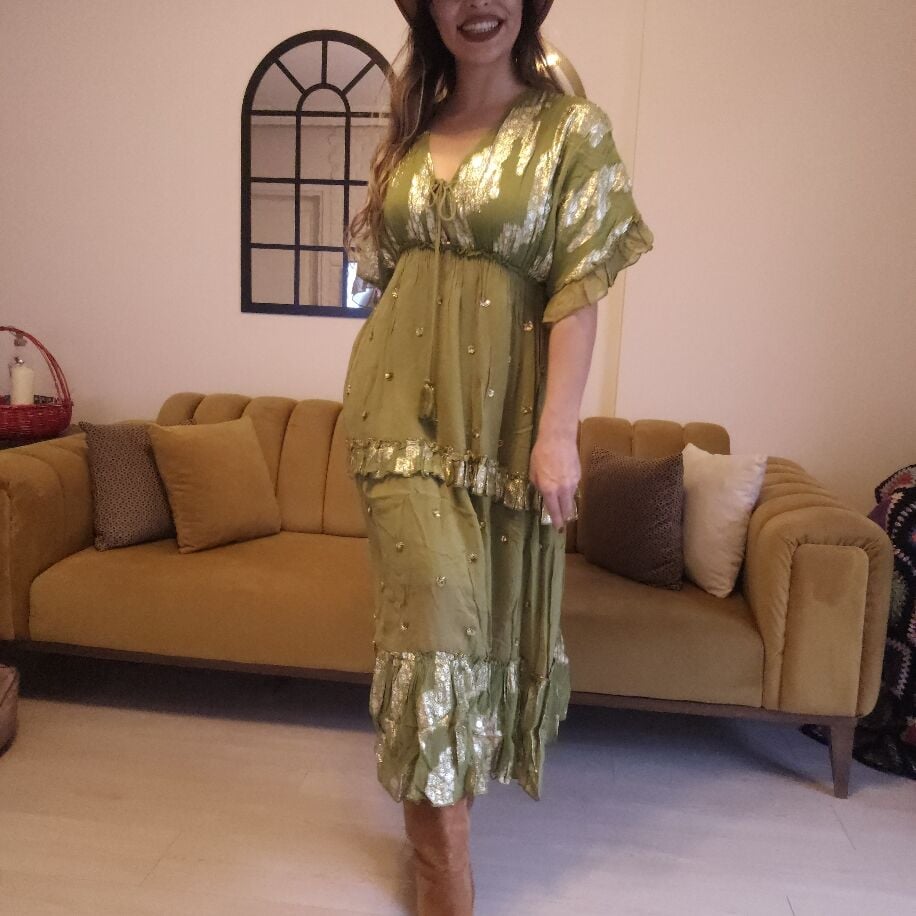 İthal Şifon Elbise Yeşil