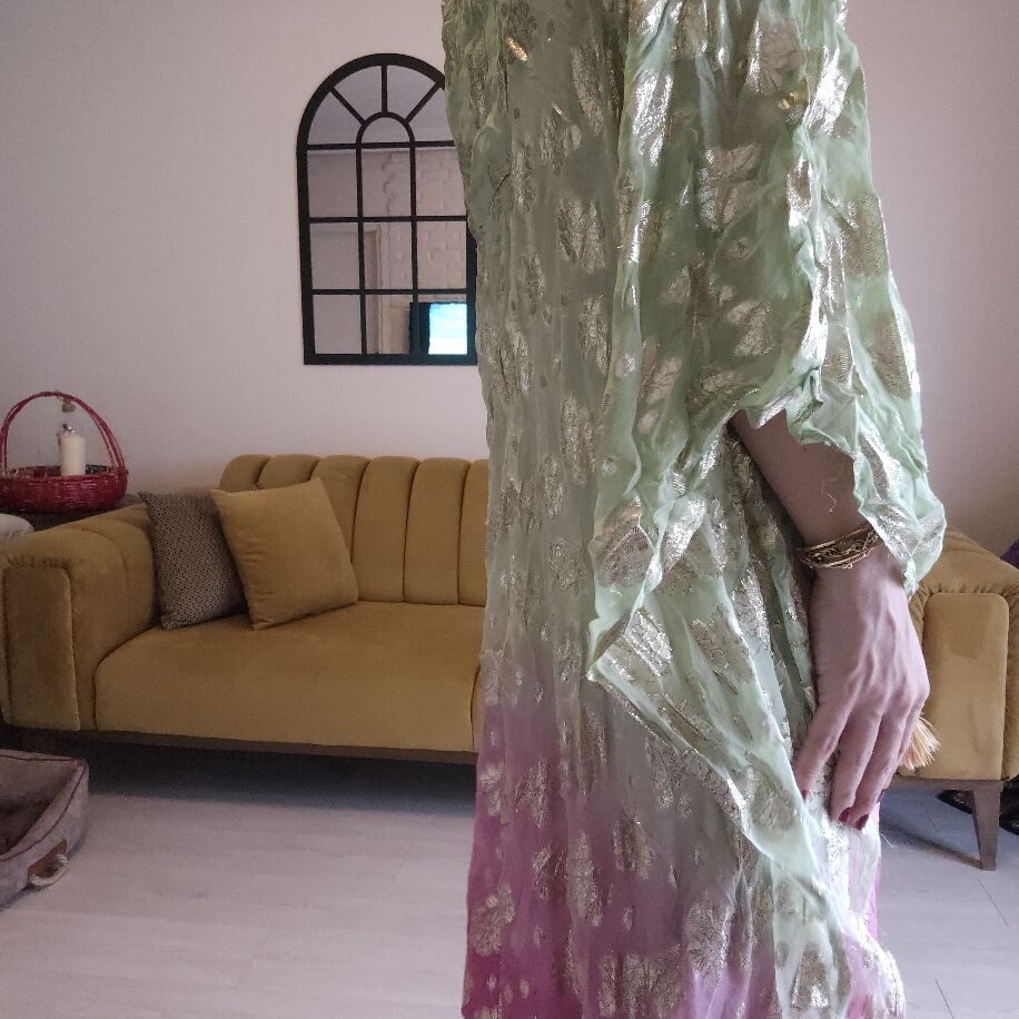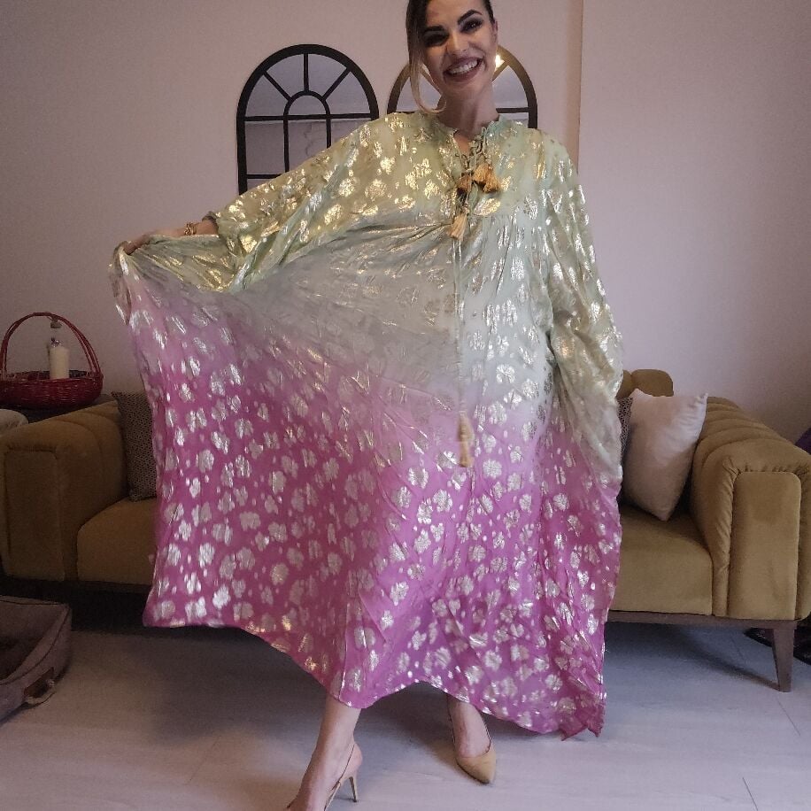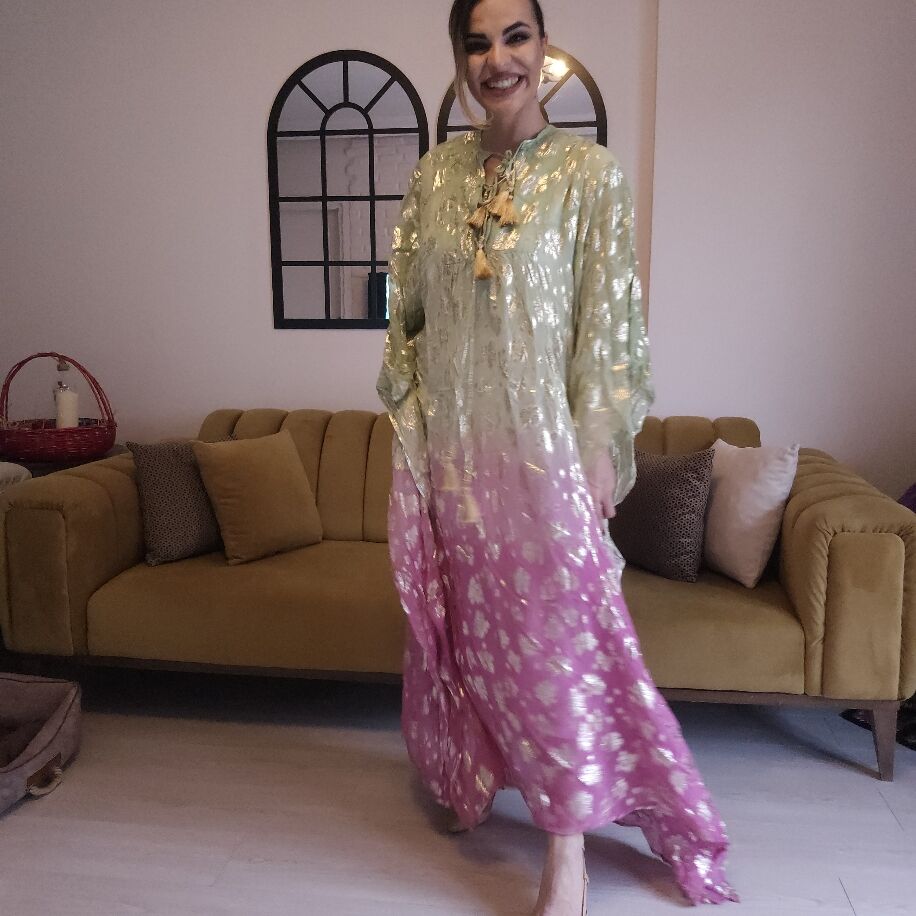 İthal Yaldızlı Panço Yeşil Pembe