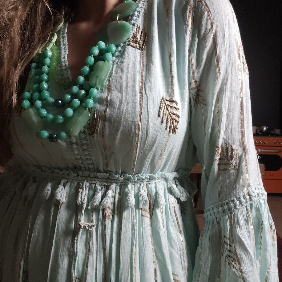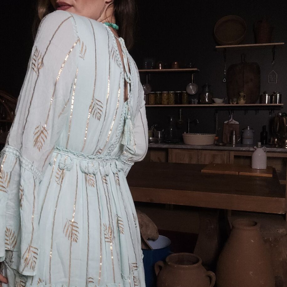 İthal Yaprak Boho Elbise Mint