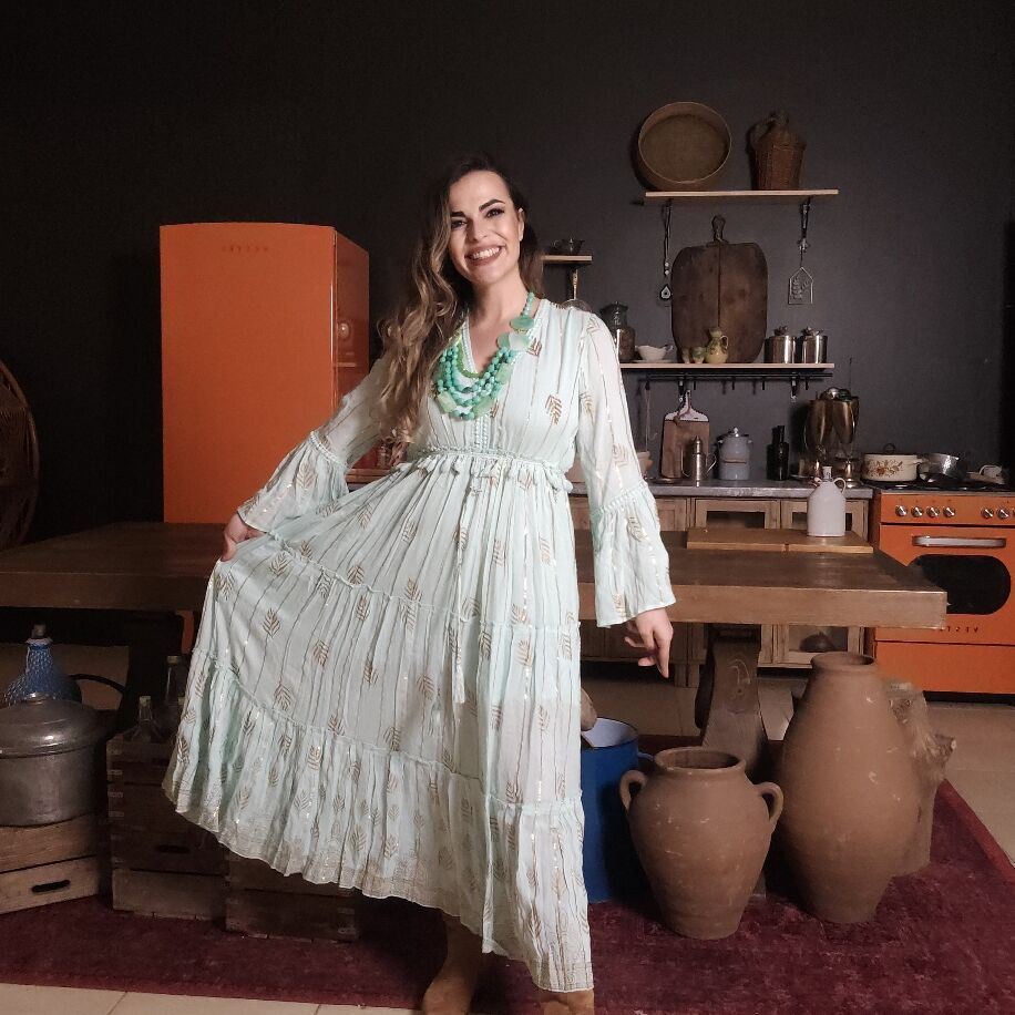 Giyilebilir Bir Sanat Eseriyle Tanışın! Sıradan bir elbise değil, her detayında el emeği olan bir hikaye taşıyın. İthal kumaşın kalitesi, el işçiliği ve özel akrilik boyamalarla birleşti; ortaya her biri eşsiz olan bu muazzam koleksiyon çıktı! Neden Bu Elbiseye Aşık Olacaksınız? Tamamen El İşçiliği: Üzerindeki her bir desen, sanatçı titizliğiyle elde boyandı. Kusursuz Detaylar: Ön ve arka V yaka, dirsekten aşağı açılan zarif İspanyol kollar ve göğüs altındaki püsküllü lastik detayıyla hem konforlu hem de iddialı. Tek Elbise, Sonsuz Tarz: İster fotoğraflardaki gibi şık bir topukluyla davete, ister postallarla asi bir festivale, isterseniz sandaletlerle deniz kenarına... Dönemsiz tasarımıyla her ana uyum sağlar. 3 Renk Seçeneği: Tarzınızı en iyi yansıtan rengi seçin (Nane yeşili, ekru ve kemik tonlarıyla). Beden: 36-44 beden aralığına uyumlu (Esnek ve dökümlü yapısıyla mükemmel kalıp). + Sınırlı sayıda üretilen bu özel parçayı kaçırmayın!