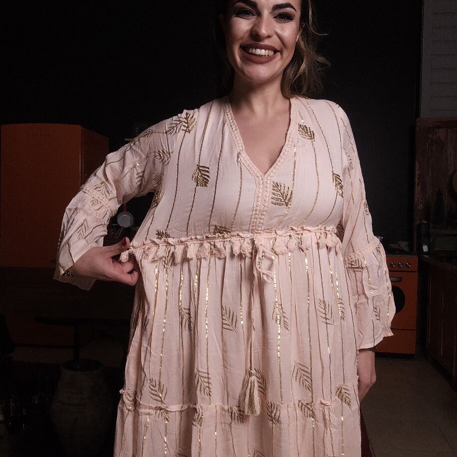 Giyilebilir Bir Sanat Eseriyle Tanışın! Sıradan bir elbise değil, her detayında el emeği olan bir hikaye taşıyın. İthal kumaşın kalitesi, el işçiliği ve özel akrilik boyamalarla birleşti; ortaya her biri eşsiz olan bu muazzam koleksiyon çıktı! Neden Bu Elbiseye Aşık Olacaksınız? Tamamen El İşçiliği: Üzerindeki her bir desen, sanatçı titizliğiyle elde boyandı. Kusursuz Detaylar: Ön ve arka V yaka, dirsekten aşağı açılan zarif İspanyol kollar ve göğüs altındaki püsküllü lastik detayıyla hem konforlu hem de iddialı. Tek Elbise, Sonsuz Tarz: İster fotoğraflardaki gibi şık bir topukluyla davete, ister postallarla asi bir festivale, isterseniz sandaletlerle deniz kenarına... Dönemsiz tasarımıyla her ana uyum sağlar. 3 Renk Seçeneği: Tarzınızı en iyi yansıtan rengi seçin (Nane yeşili, ekru ve kemik tonlarıyla). Beden: 36-44 beden aralığına uyumlu (Esnek ve dökümlü yapısıyla mükemmel kalıp). + Sınırlı sayıda üretilen bu özel parçayı kaçırmayın!