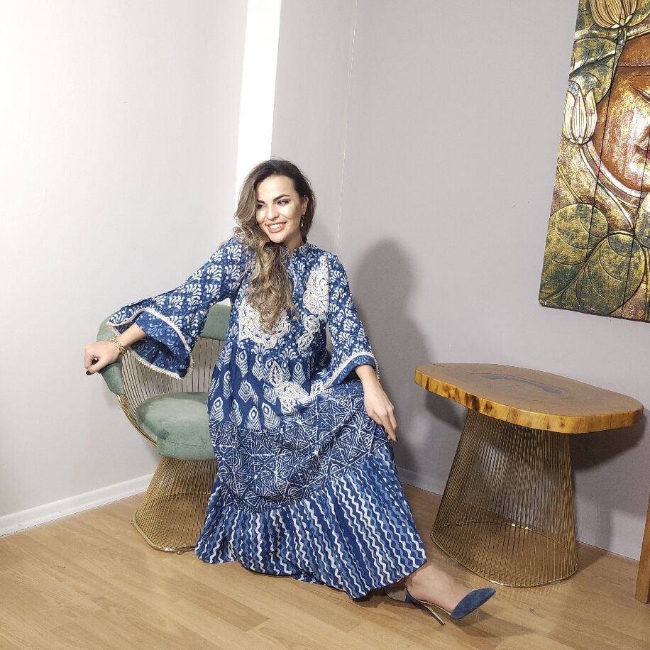İthal ve tamamen el işçiliğiyle hazırlanmış bu özel elbise, taş baskı detaylarıyla şıklığı ön plana çıkarıyor. 36'dan 44 bedene kadar geniş beden aralığıyla her tarza uyum sağlıyor. Günün her anında, özel bir dokunuşla kendinizi şık hissedin.