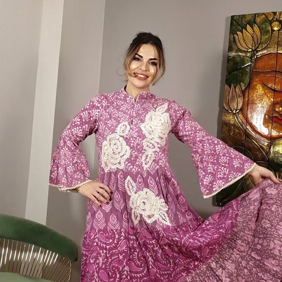 İthal ve tamamen el işçiliğiyle hazırlanmış bu özel elbise, taş baskı detaylarıyla şıklığı ön plana çıkarıyor. 36'dan 44 bedene kadar geniş beden aralığıyla her tarza uyum sağlıyor. Günün her anında, özel bir dokunuşla kendinizi şık hissedin.