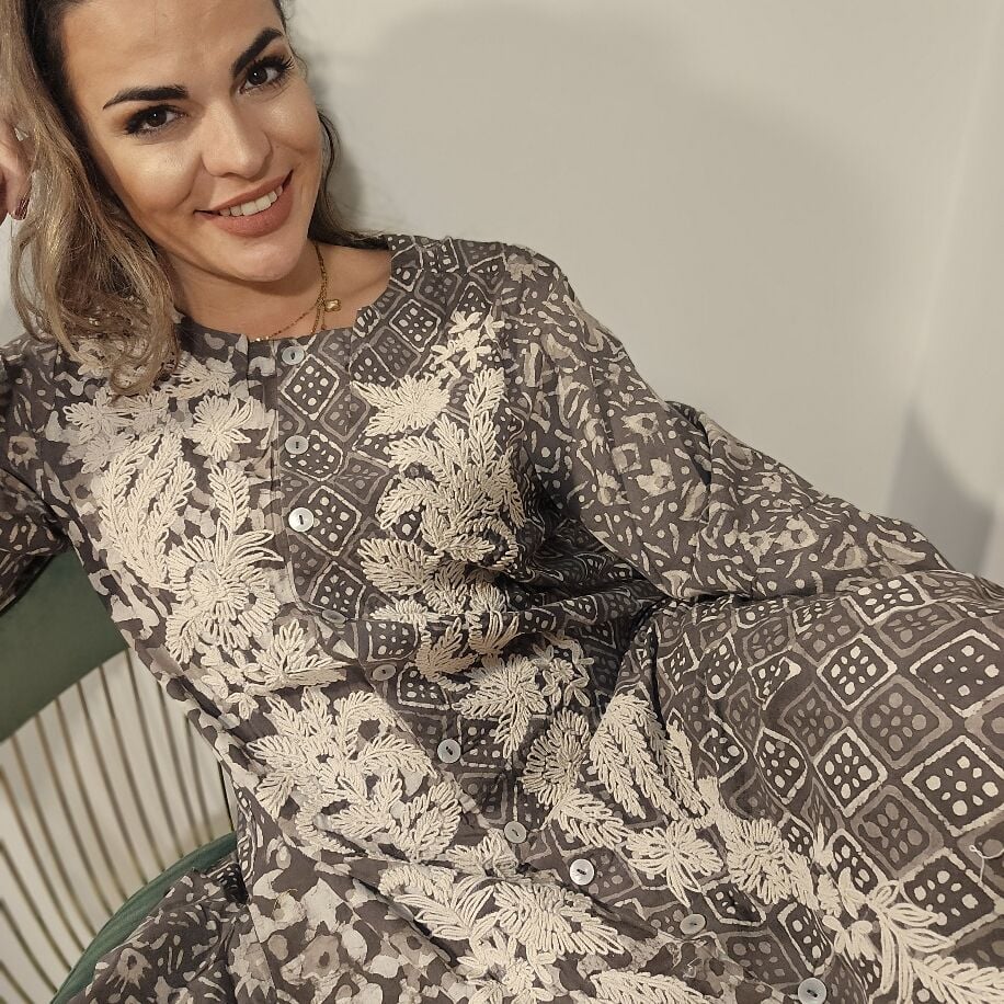 Üç farklı renkte sunulan bu ithal ürün, şık bir kap elbiseden oluşuyor. Tam boy kap elbise üzerindeki taş baskı motifleri, tamamen el işçiliğiyle işlenmiştir. Her tarza ve bedene uyum sağlayan bu özel parça, 36'dan 48 bedene kadar rahatlıkla uyum gösterir.