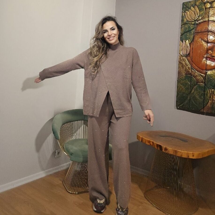 Bu şık trikolar takımlar, hem konforu hem de zarafeti bir arada sunuyor. Kazak ve pantolonun ön yüzünde yer alan ince taş detayları, zarif bir parlaklık katarken, yüksek kaliteli kumaşı sayesinde tüylenme ve bozulma yapmıyor. İthal bu özel ürün, Small'dan XX-Large'a kadar geniş beden aralığıyla uyum sağlıyor.