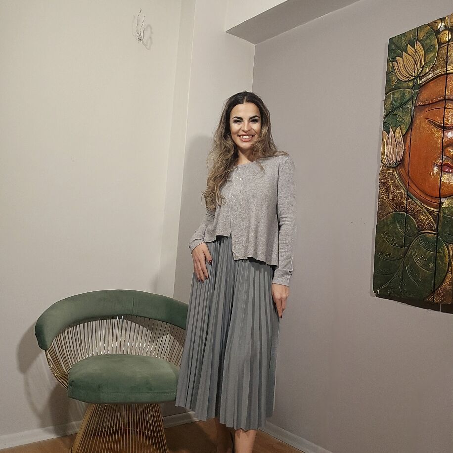 Zarafeti ve şıklığı bir arada sunan iki parçalı setimizle tanışın! İtalya menşeli Mercerize kumaştan üretilmiş kazak, minik taş detaylarıyla göz kamaştırıyor. Eteğimiz ise ipek ve saten karışımı, pileli tasarımıyla hem rahat hem de şık. Üç farklı renkte ve S-XL bedene kadar geniş bir uyum sunuyor.