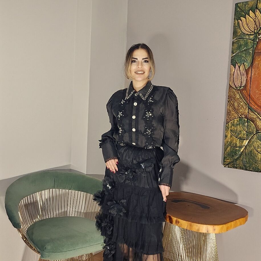 Üç boyutlu çiçek motiflerine sahip etek ile sofistike bir tarz yakalıyoruz. Siyah ve beyaz renk seçenekleriyle ve 36'dan 42'ye kadar uyum sağlayan standart beden aralığıyla sunuyoruz.